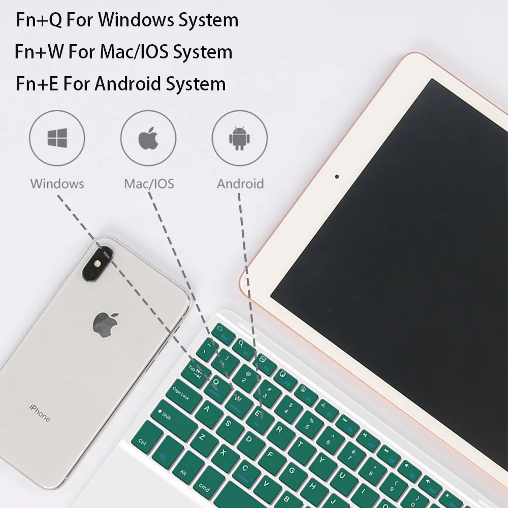 Notice:This keyboard is 3-system universal keyboard,after confirming using it then push FN+QNN/E to choose suitable system.