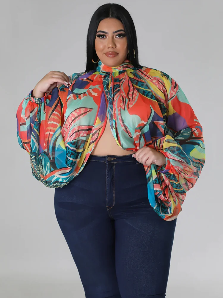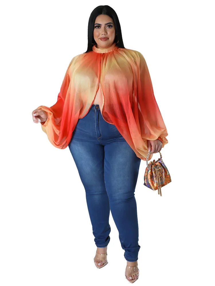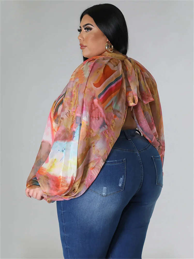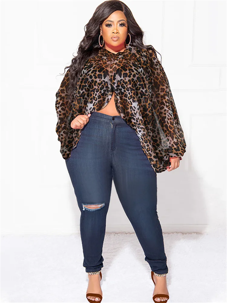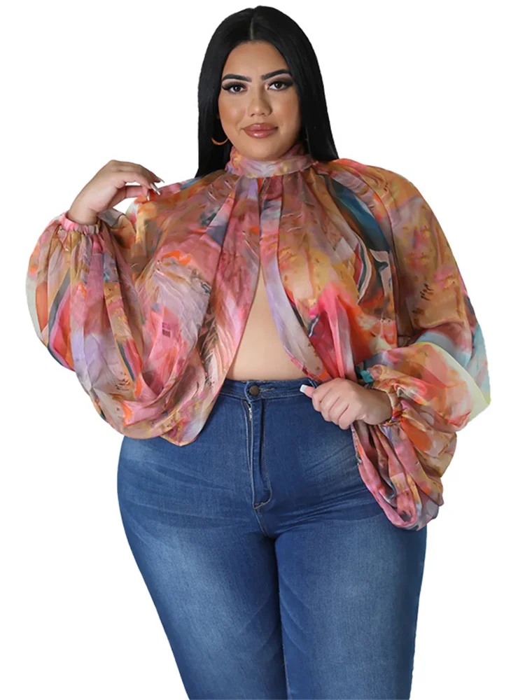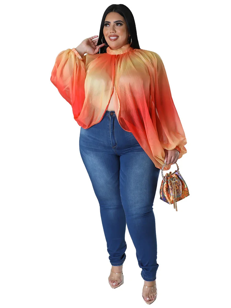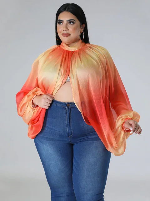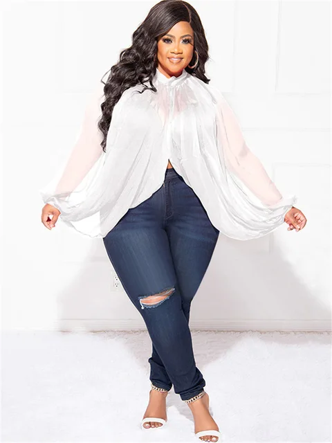 Wmstar Plus Size T-Shirts Print Women Tops Long Sleeve Open Loose Mesh See Through Sexy Chiffon Bulk