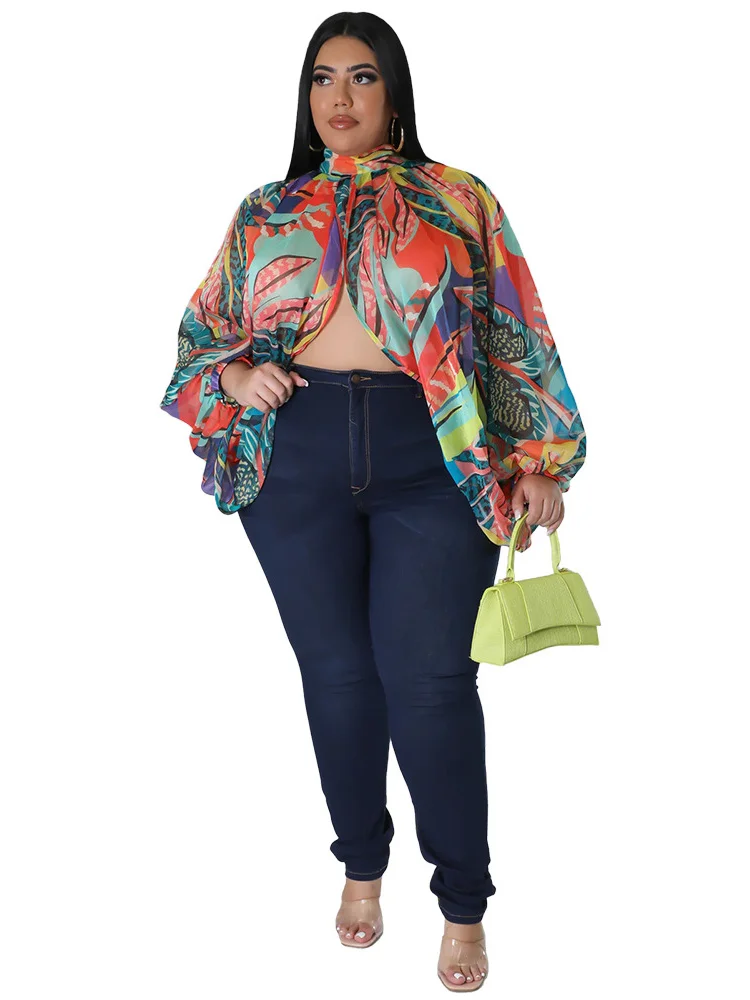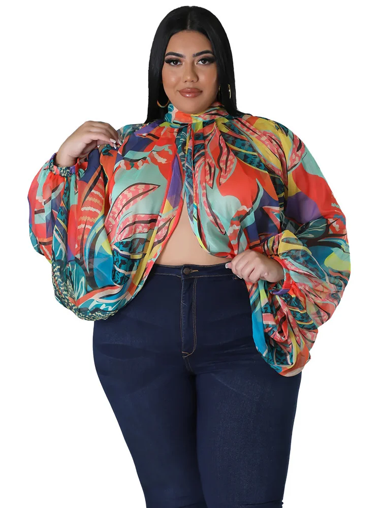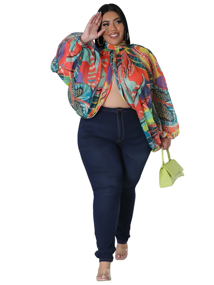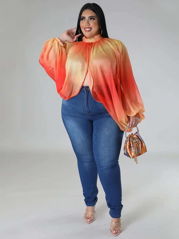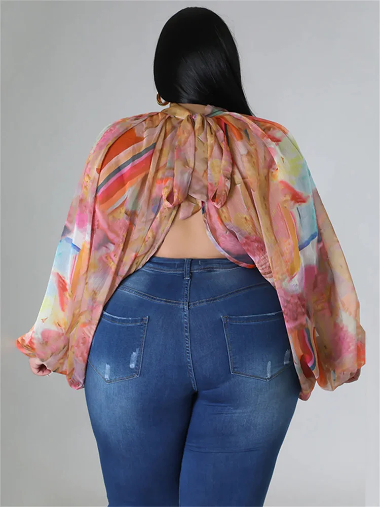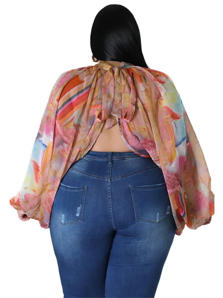 Wmstar Plus Size T-Shirts Print Women Tops Long Sleeve Open Loose Mesh See Through Sexy Chiffon Bulk