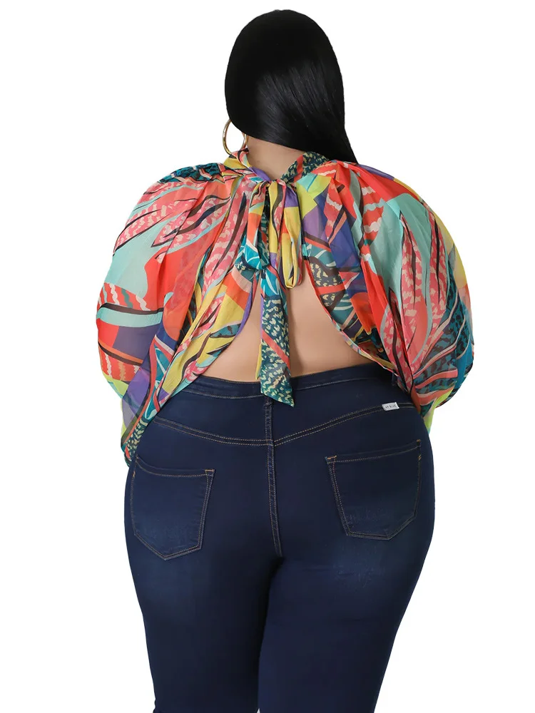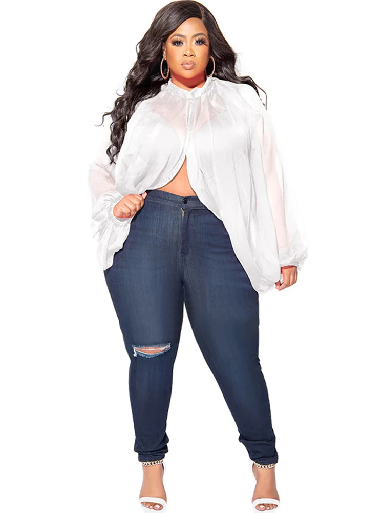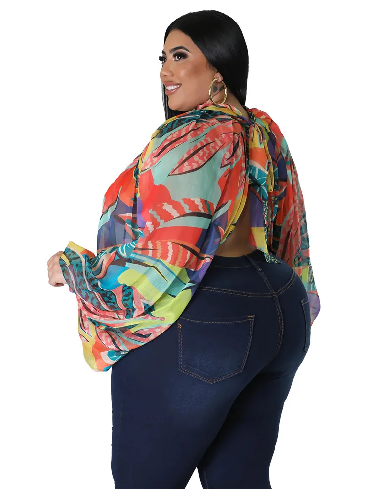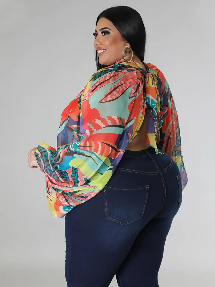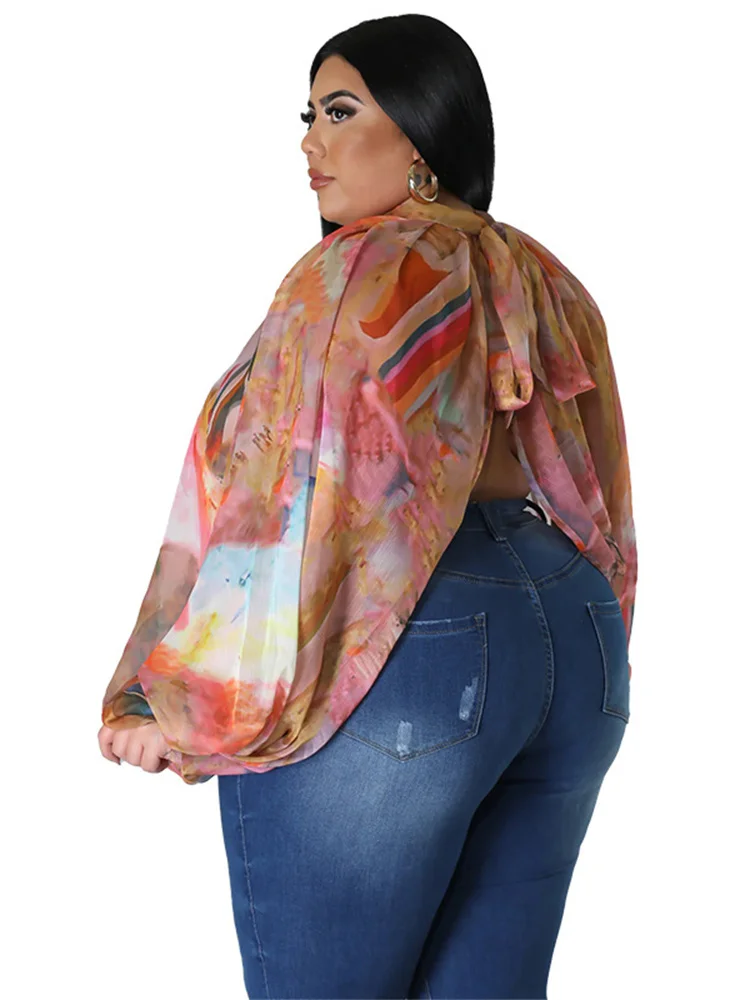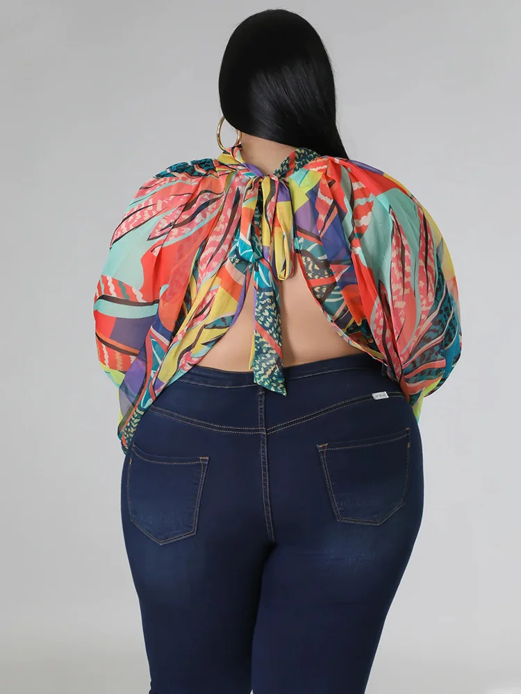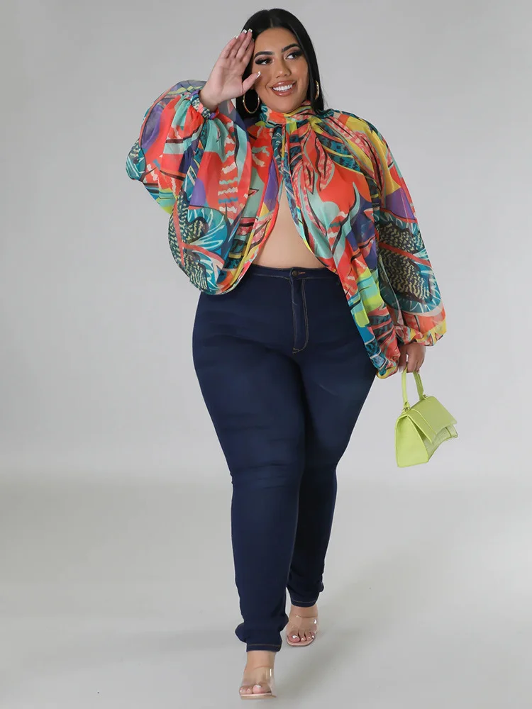 Wmstar Plus Size T-Shirts Print Women Tops Long Sleeve Open Loose Mesh See Through Sexy Chiffon Bulk