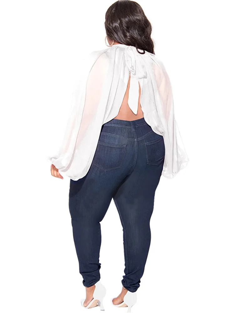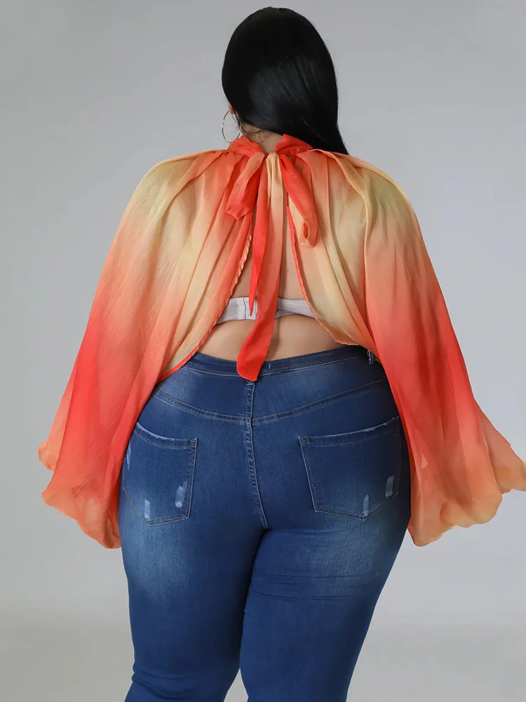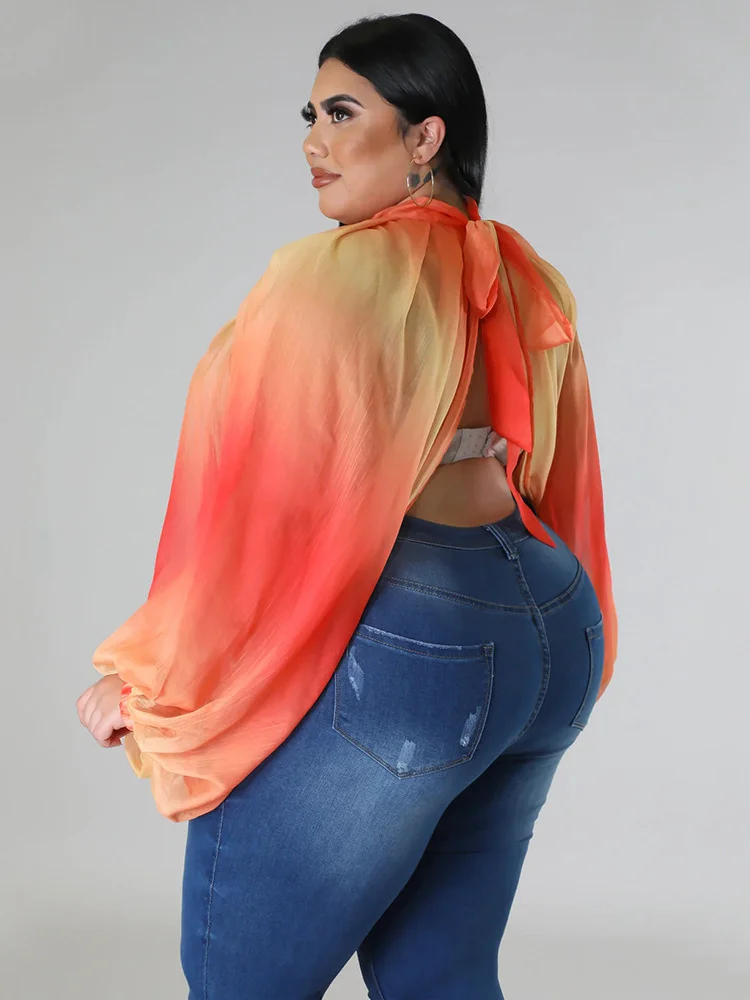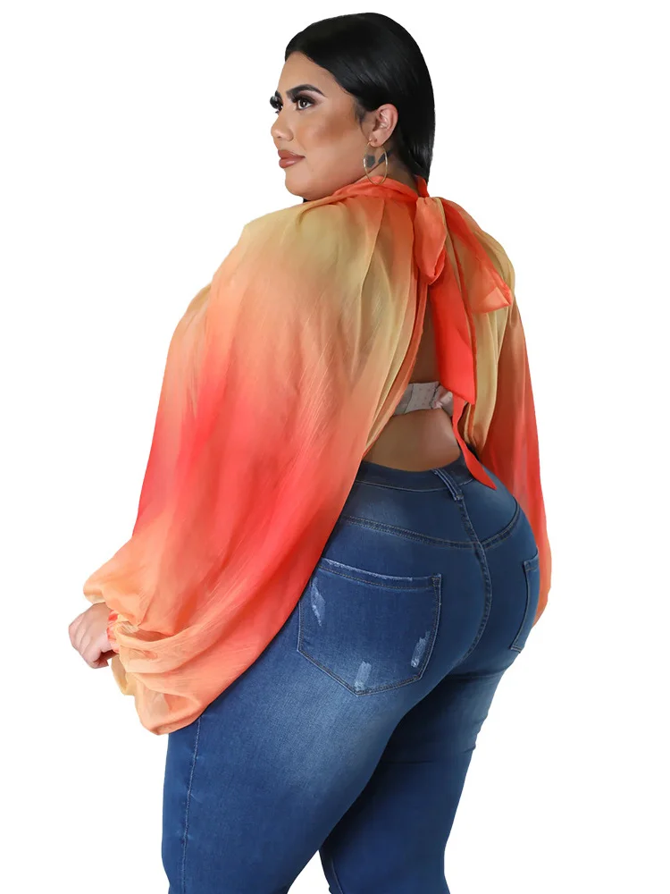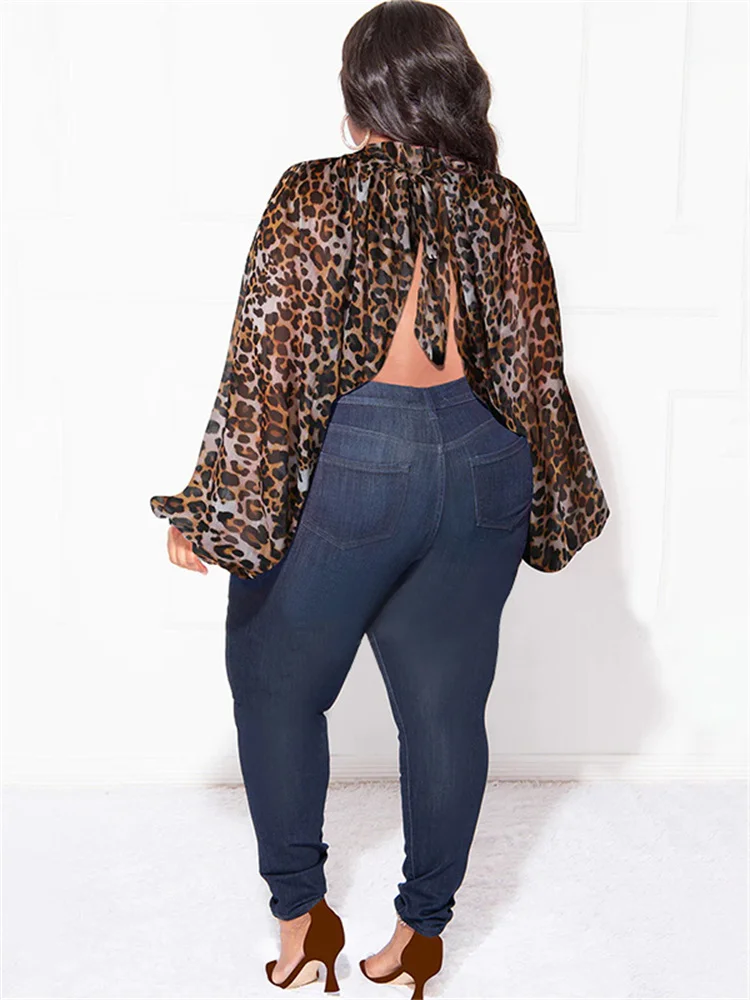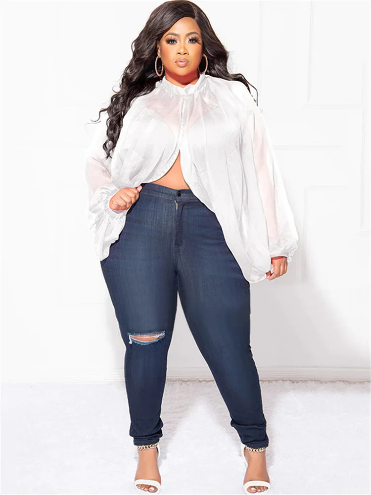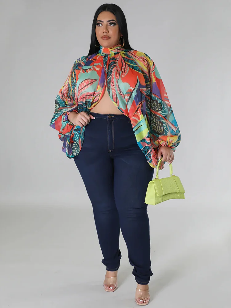 Wmstar Plus Size T-Shirts Print Women Tops Long Sleeve Open Loose Mesh See Through Sexy Chiffon Bulk