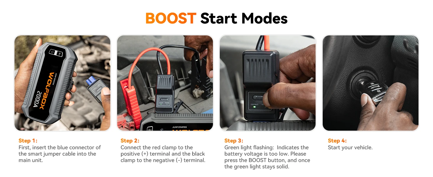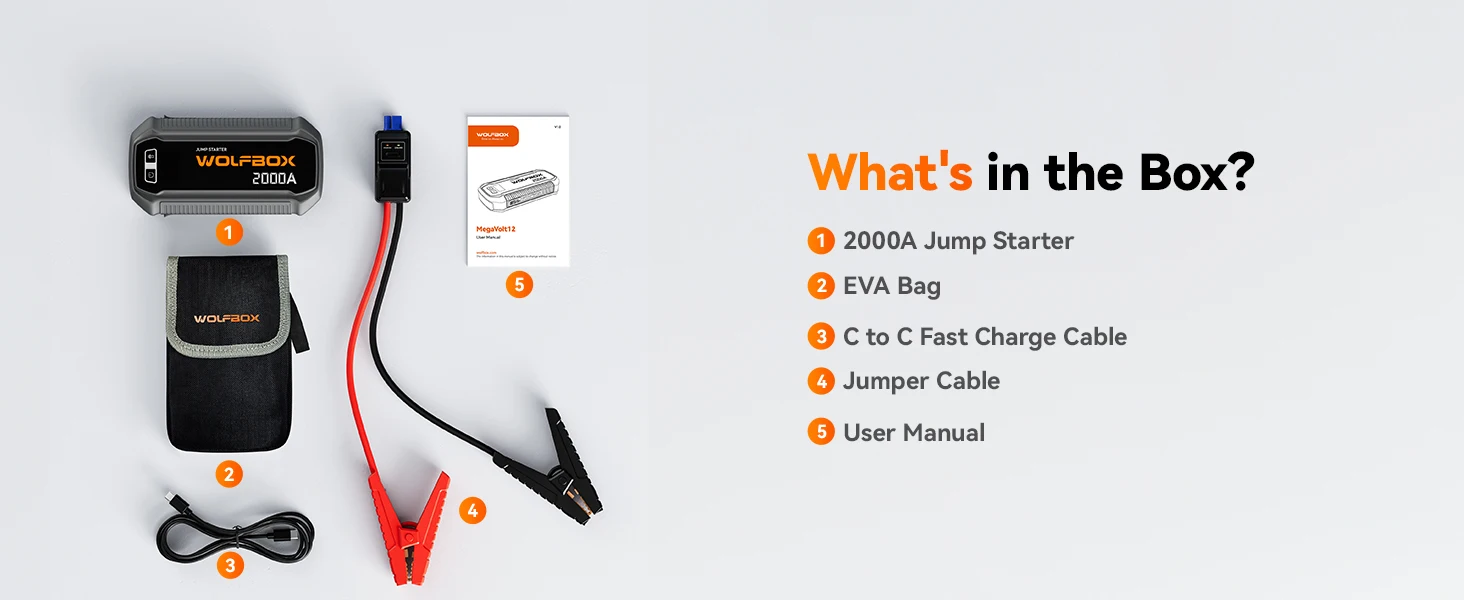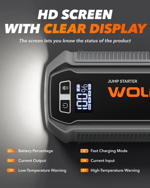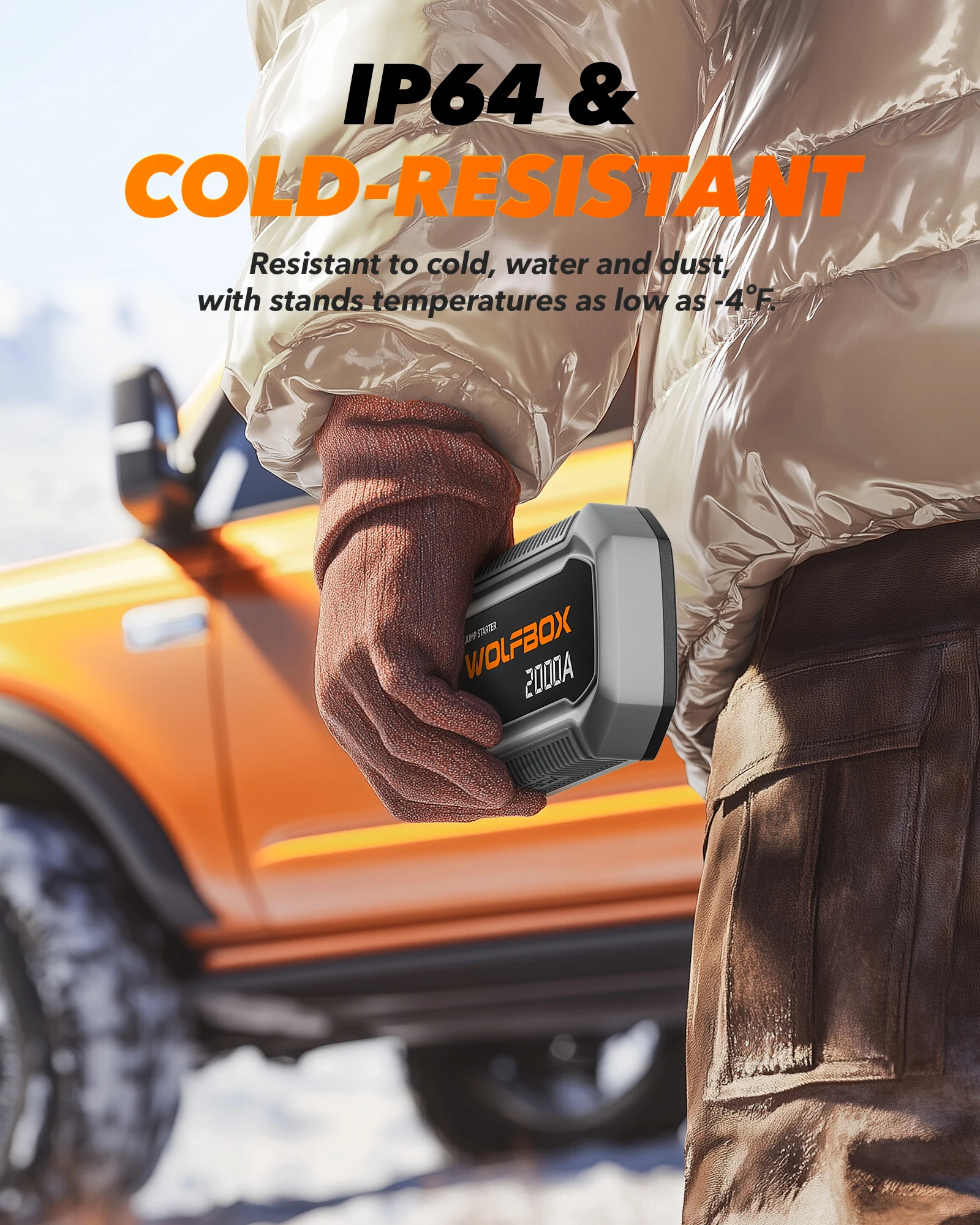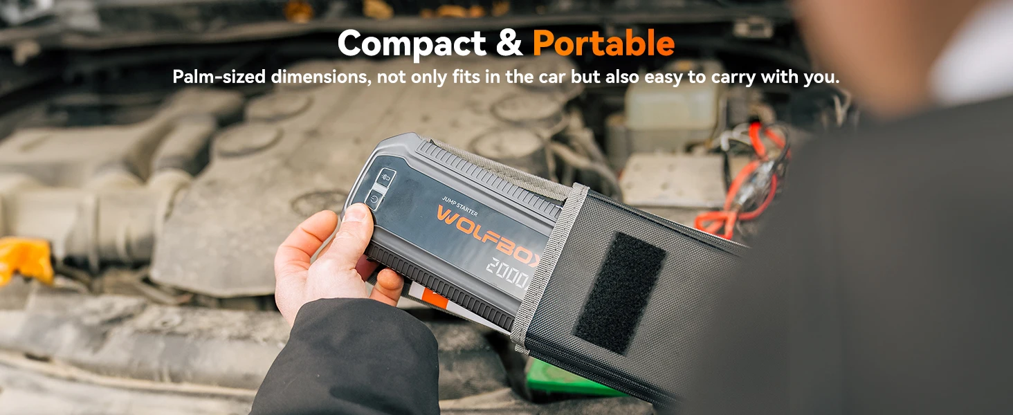 WOLFBOX 2000A Jump Starter,12V Car Battery Jump Starter,30W Quick Charge 12000mAh for 8L Gas 6L Diesel