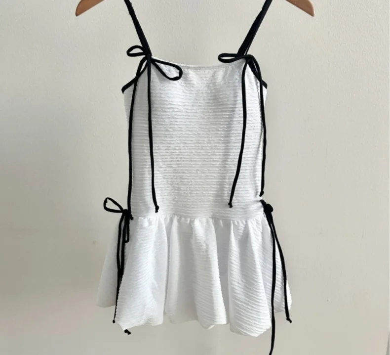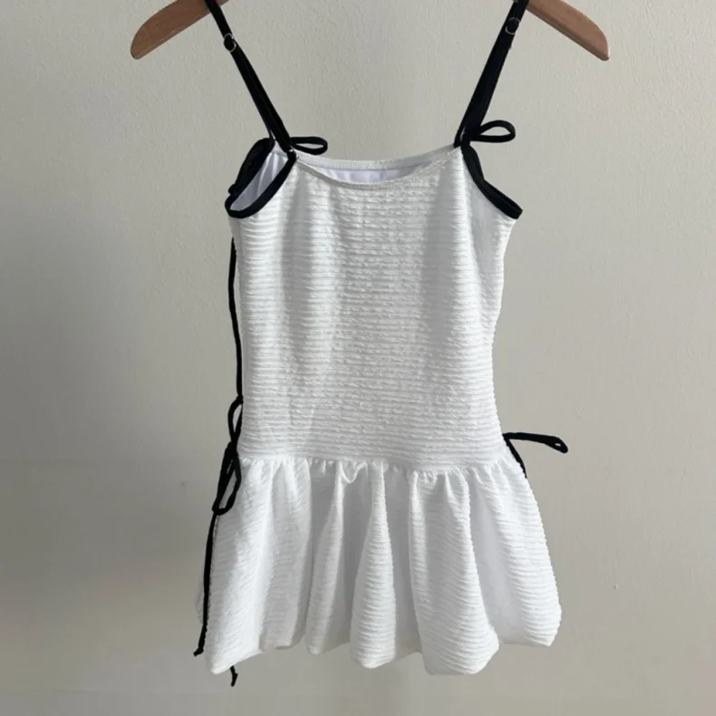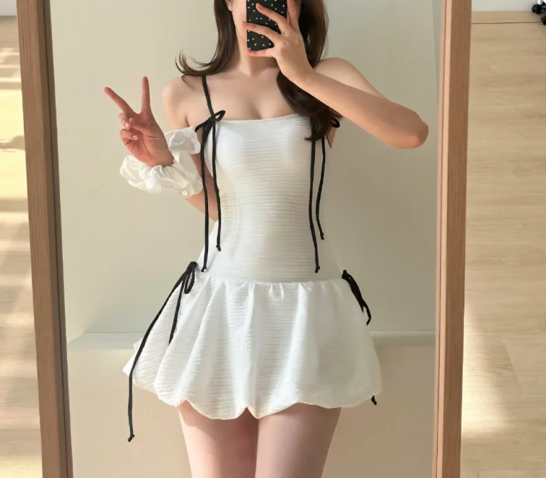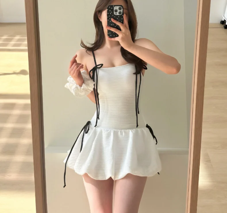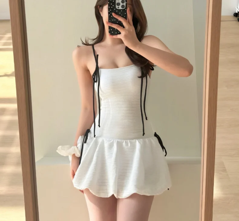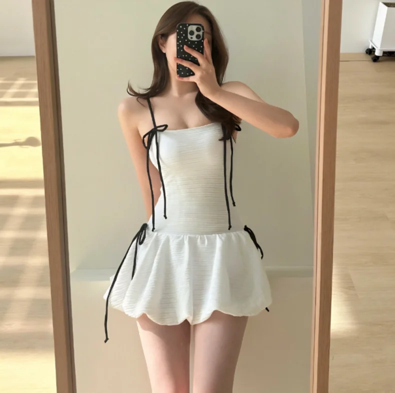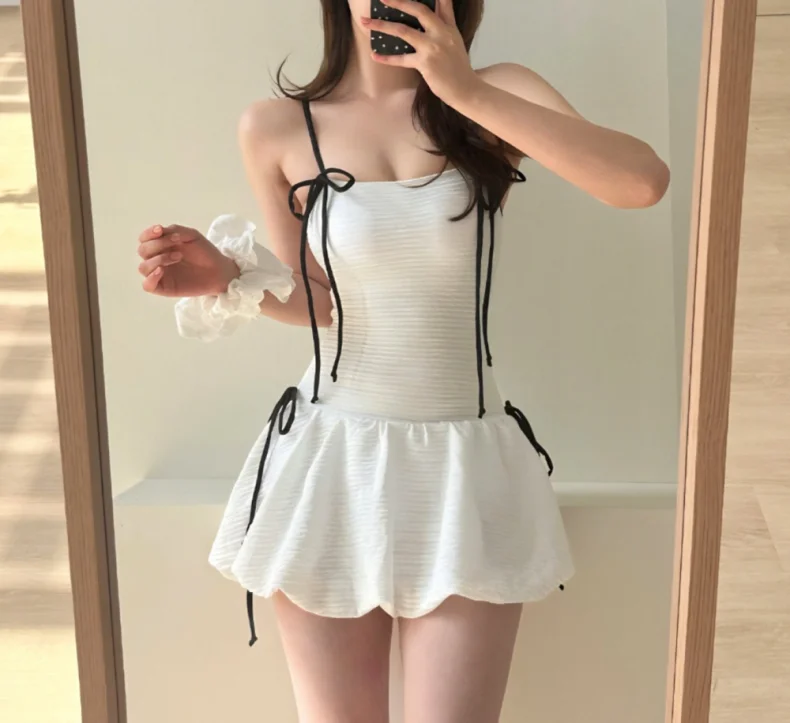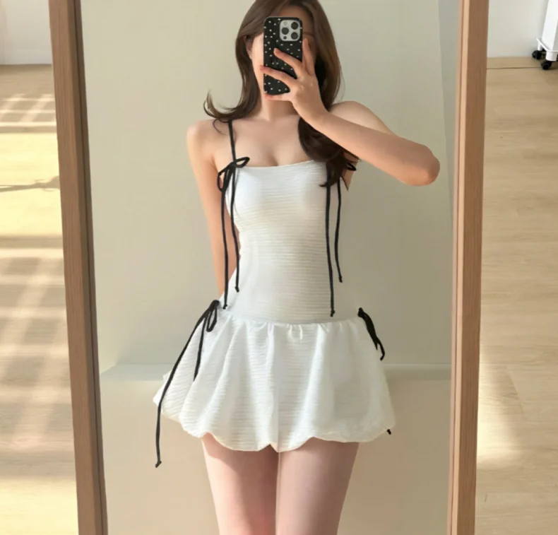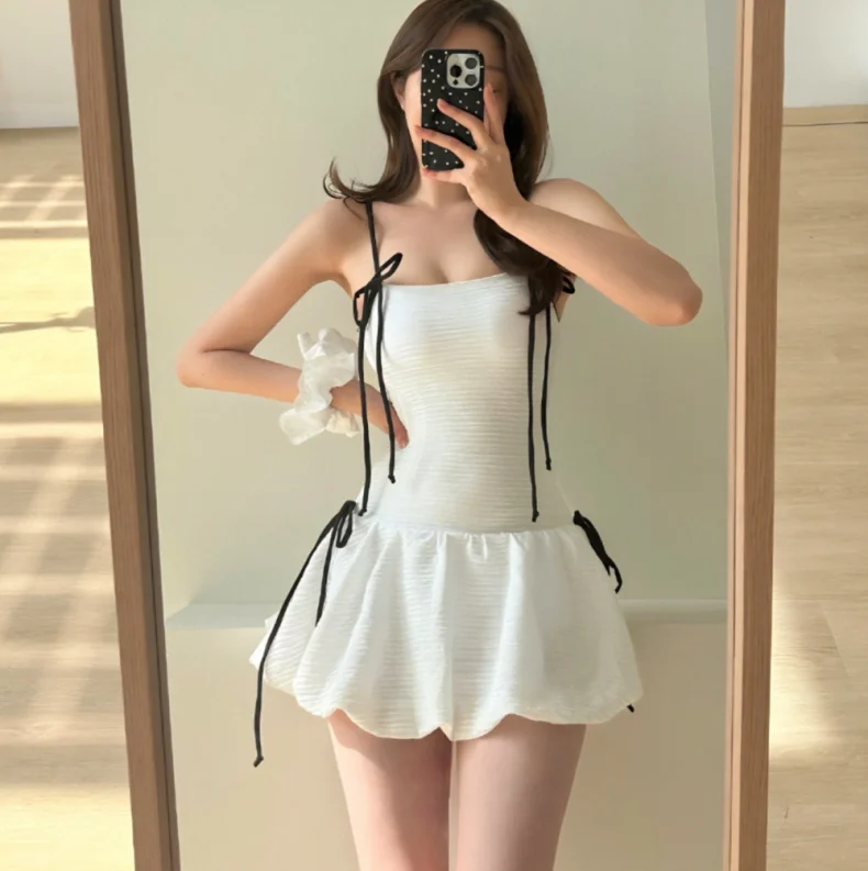 Woman Swimsuit One Piece White Belly Hidden Beach Wear Swim Dress Padded Swim Skirt Summer Korean Style