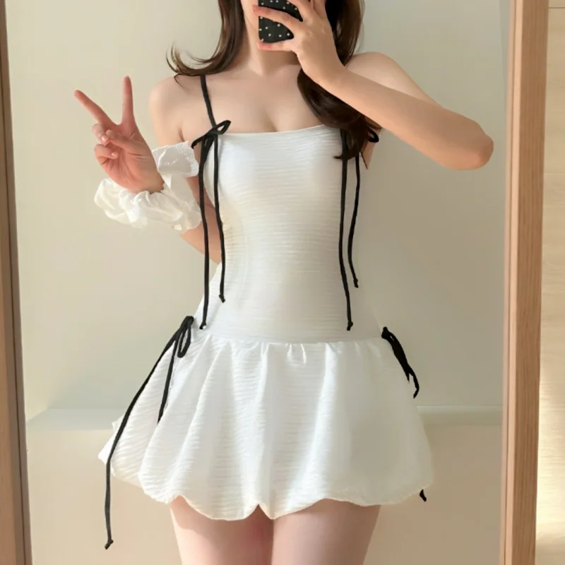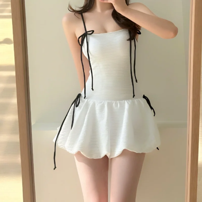 Woman Swimsuit One Piece White Belly Hidden Beach Wear Swim Dress Padded Swim Skirt Summer Korean Style
