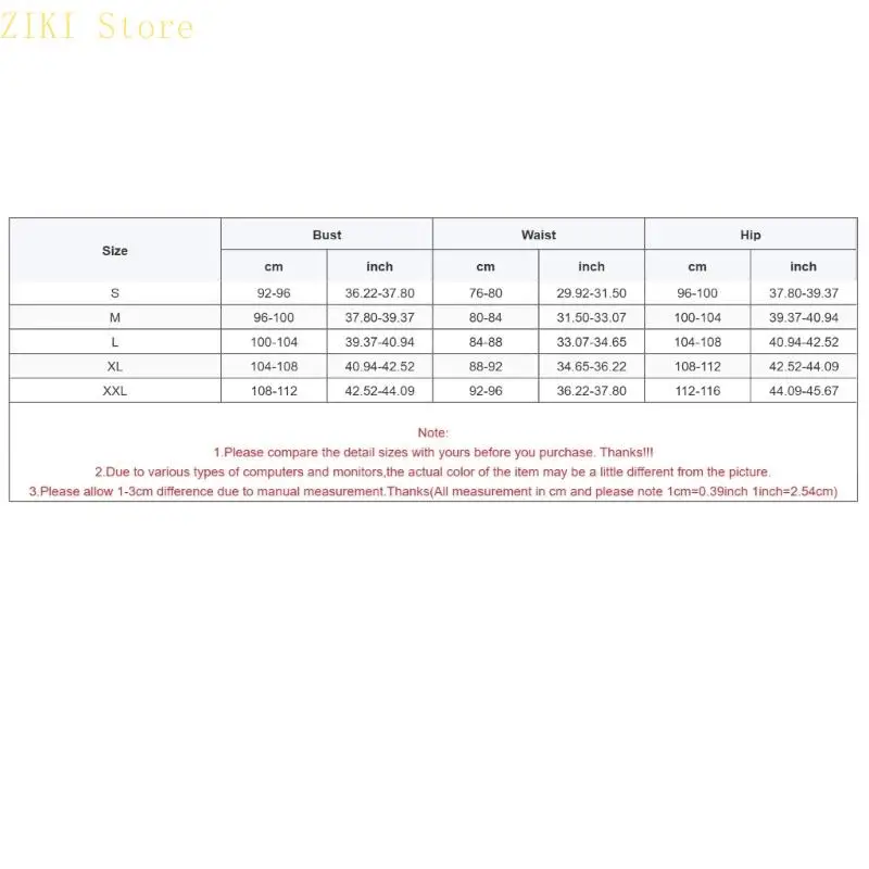 Size:XXL Bust:108-112cm(42.52-44.09inch) Waist:92-96cm(36.22-37.80inch) Hip:112-116cm(44.09-45.67inch)