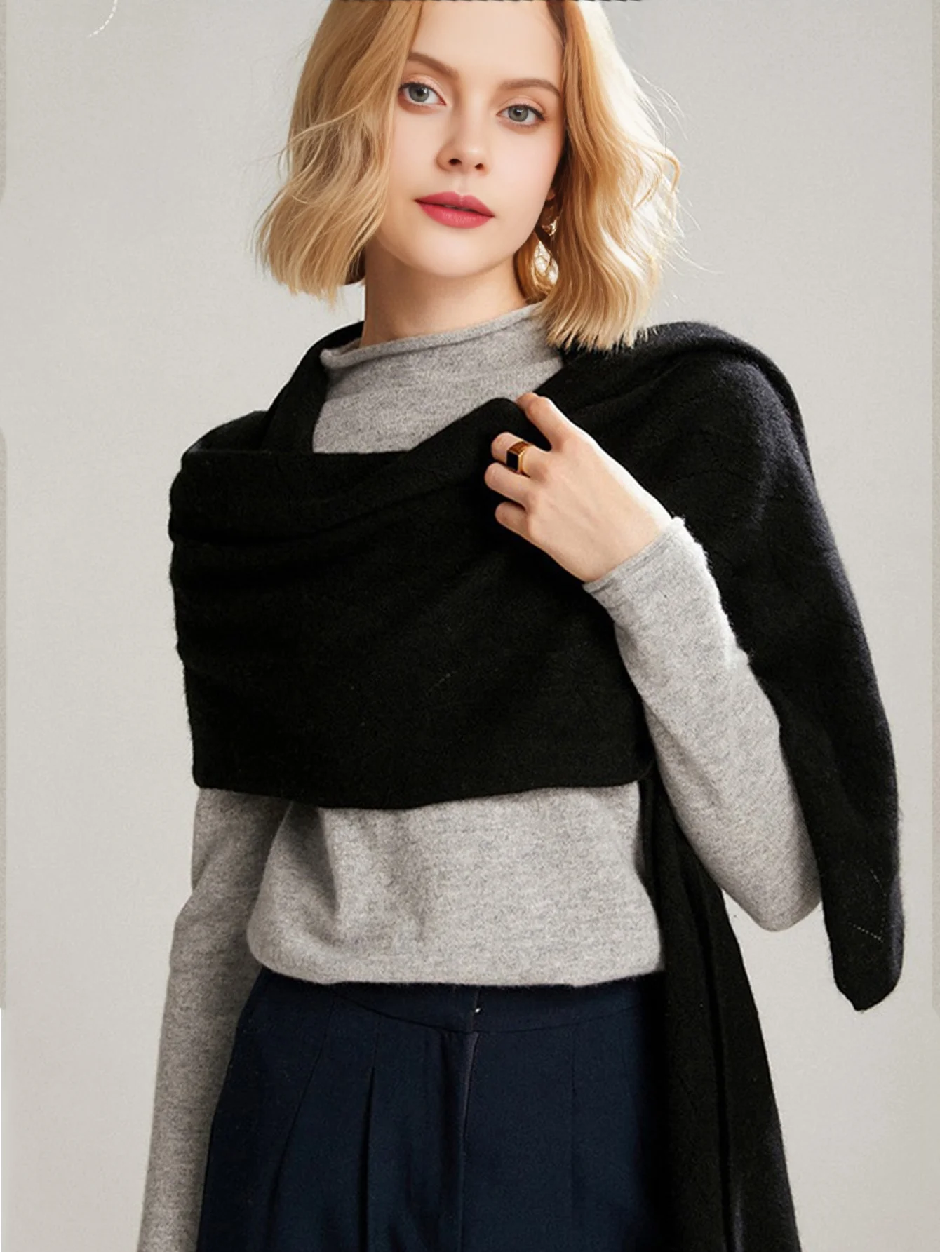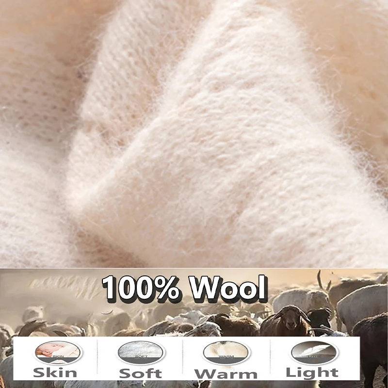 100% Wool Knitted Long Scarf For Women Winter Soft Warm Fashionable Stylish Two-In-One Scarf Shawls Hollow Out Wollen Neck Warm