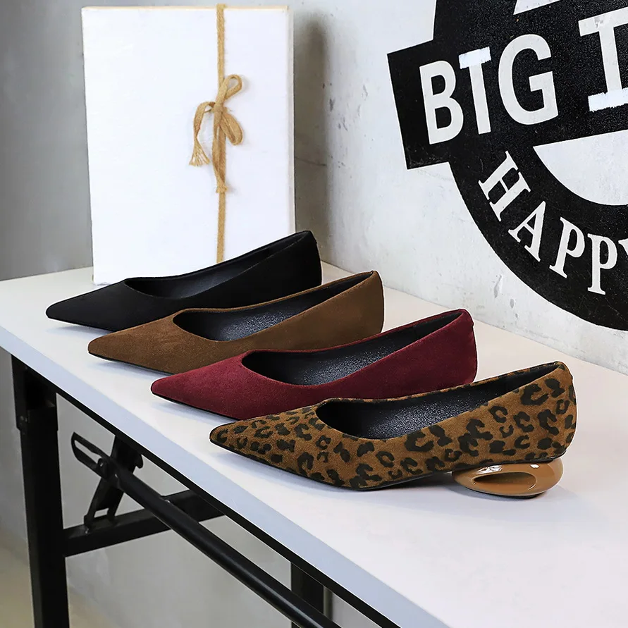 Women 3cm High Heels Lady Retro Pointed Toe Suede Low Heels Pumps Female Strange Style Daily Versatile