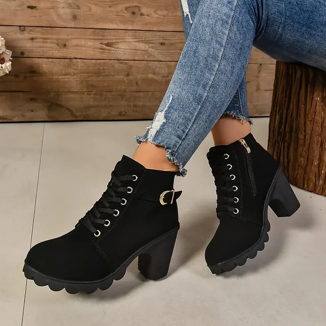 Women Boots Autumn Winter High Quality Boots Lace-up High Heels Shoes for Women Outdoor Fashion Anti-slip