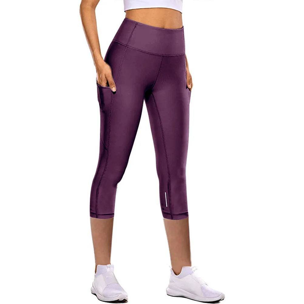 Women Calf-length Yoga Running Legging Capri Sport Pants Fitness Gym High Waist Legging Girl Black Mesh 3/4 Gym Yoga Pants 2021