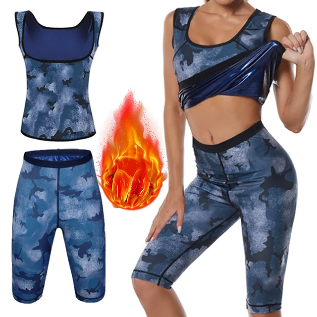 Women Camouflage Sauna Shapewear Hot Sweat Body Shaper Sets Fitness Vest Slimming Shorts Flat Belly Pants
