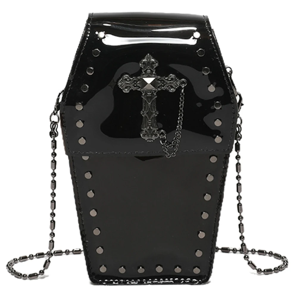 1. PVC: Crafted with high-quality PVC, this coffin shaped bag offers a comfortable grip and long-lasting durability, for everyday use.