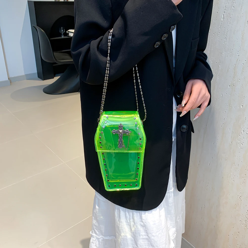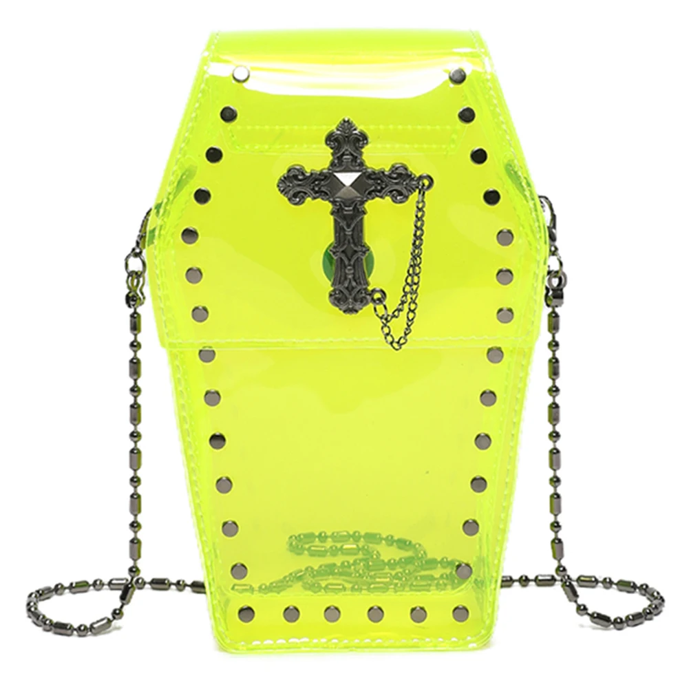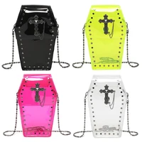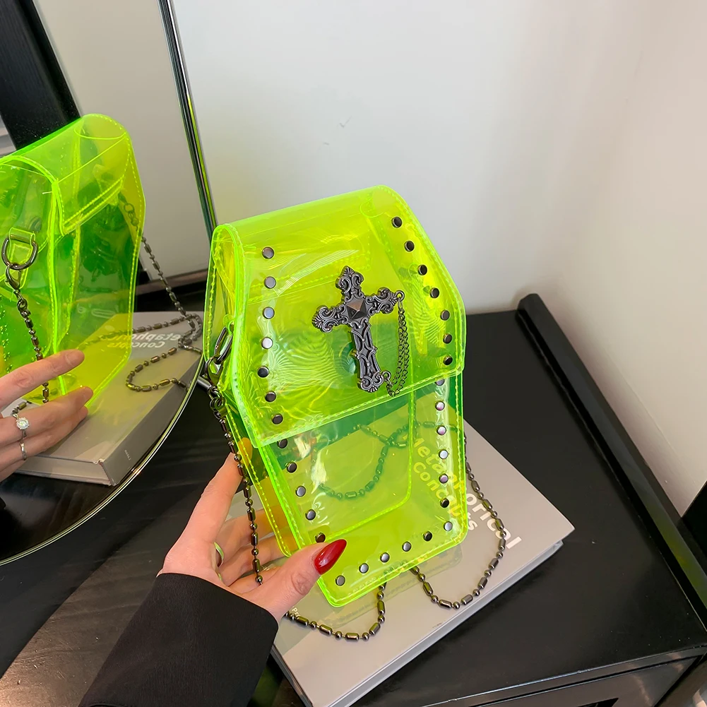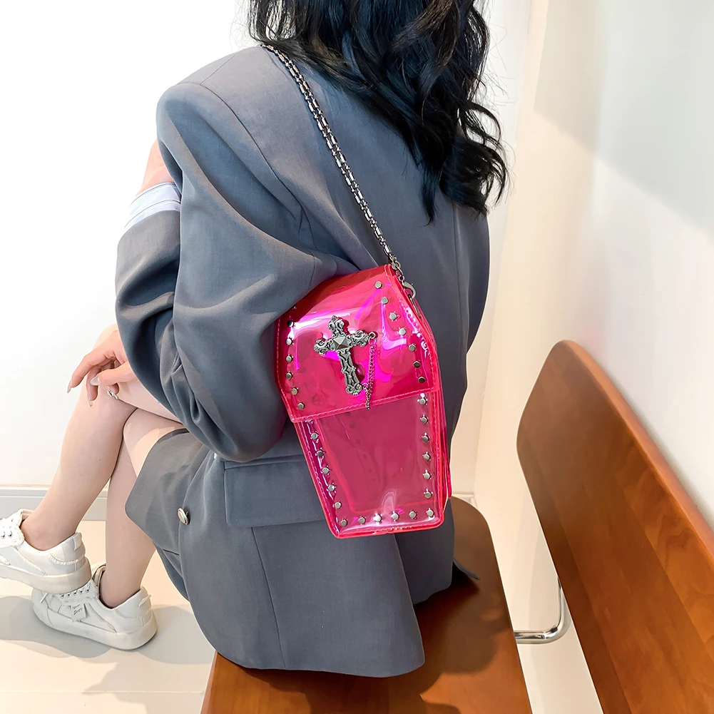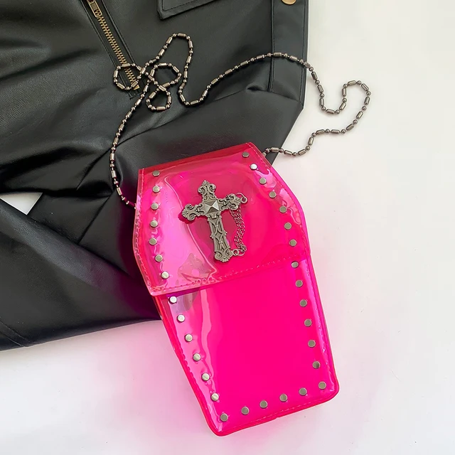 Women Gothic Crossbody Bag PVC Clear Jelly Rivet Satchel Bag Cross Coffin Sling Bag Stadium Approved Phone Bag