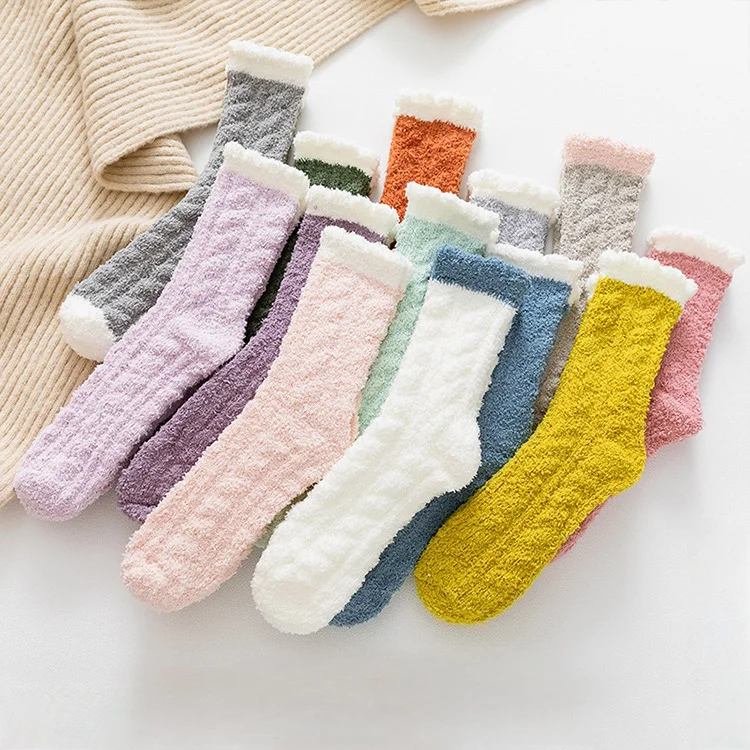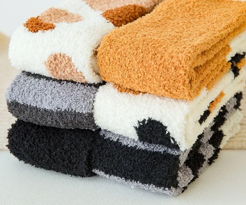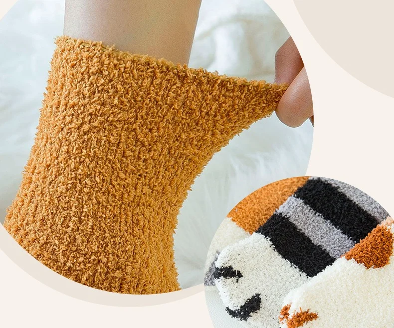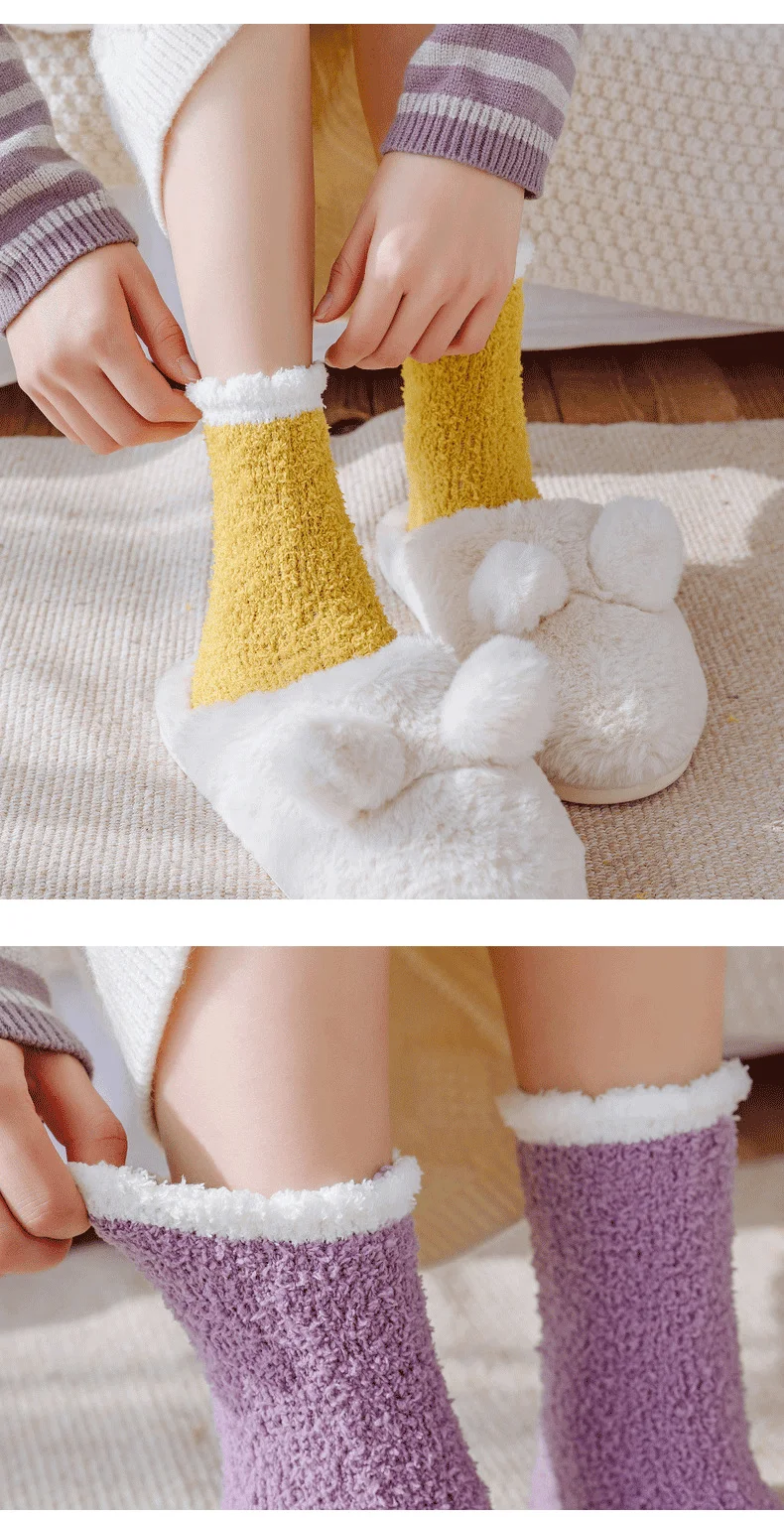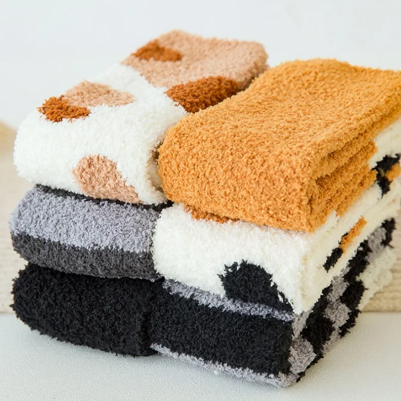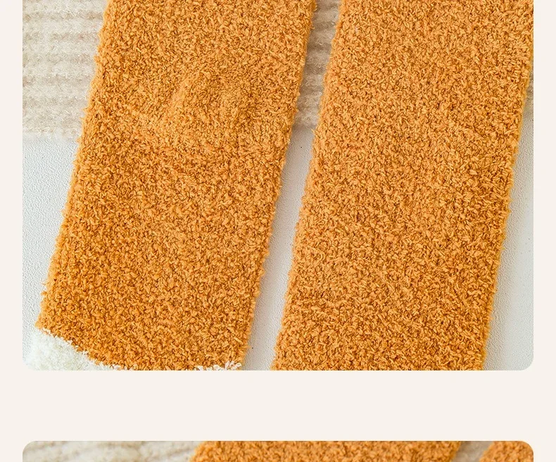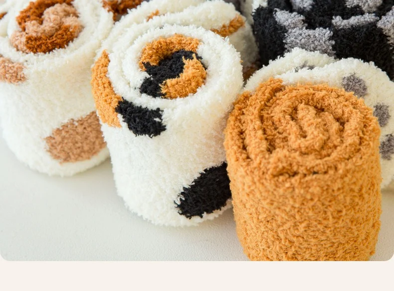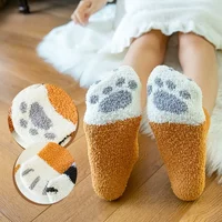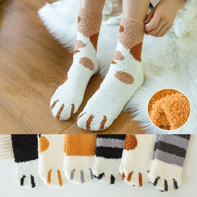 Women Cute Cat Paw Coral Fleece Socks Winter Thermal Thick Warm Fluffy Mid Calf Socks Non Slip Home Floor