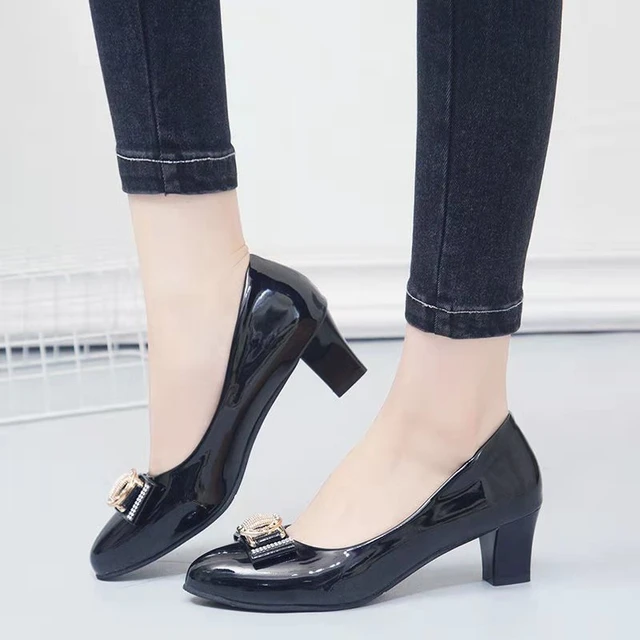 Women Dress Shoes Patent Leather high Heel Pumps Fashion Shoes Pointed Toe Slip on Office Ladies Shoes