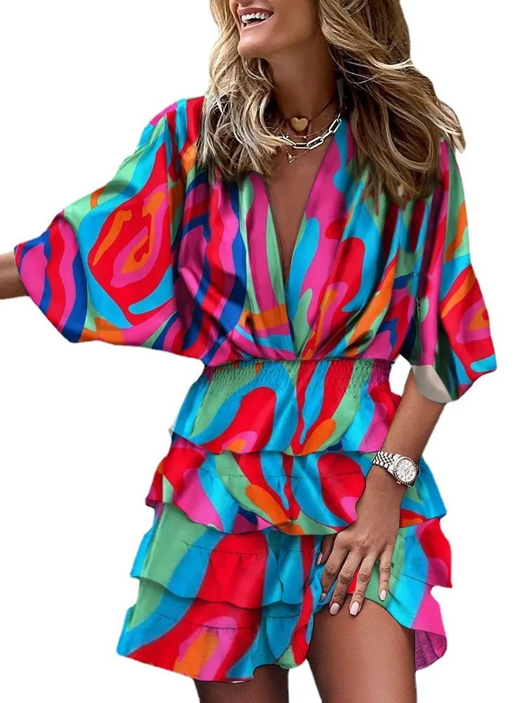 ZANZEA V-Neck Short Sleeve Floral Printed Sundress Women Summer Bohemian Dress Vintage Loose Elegant Casual Holiday Beach Robe