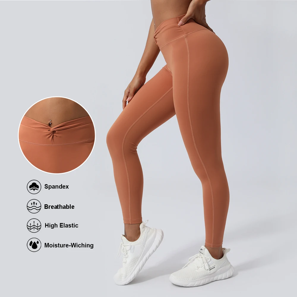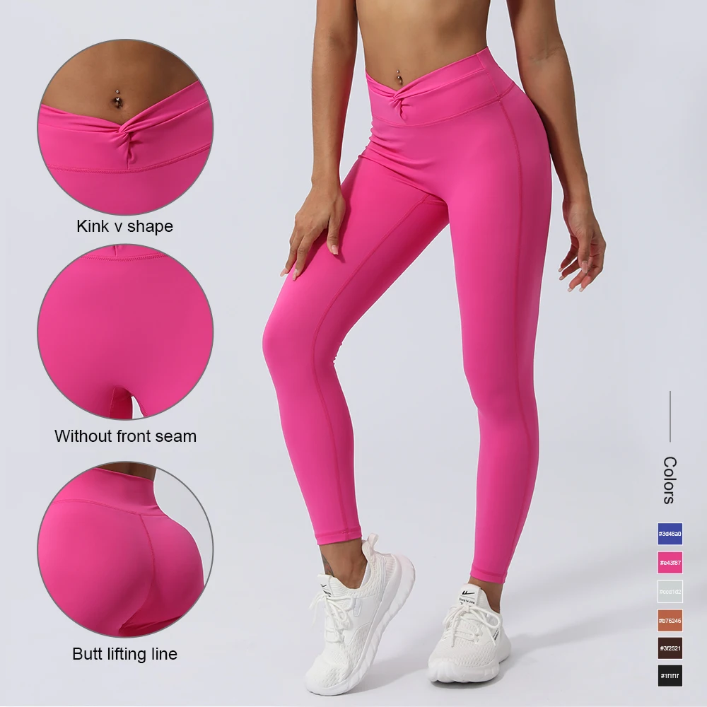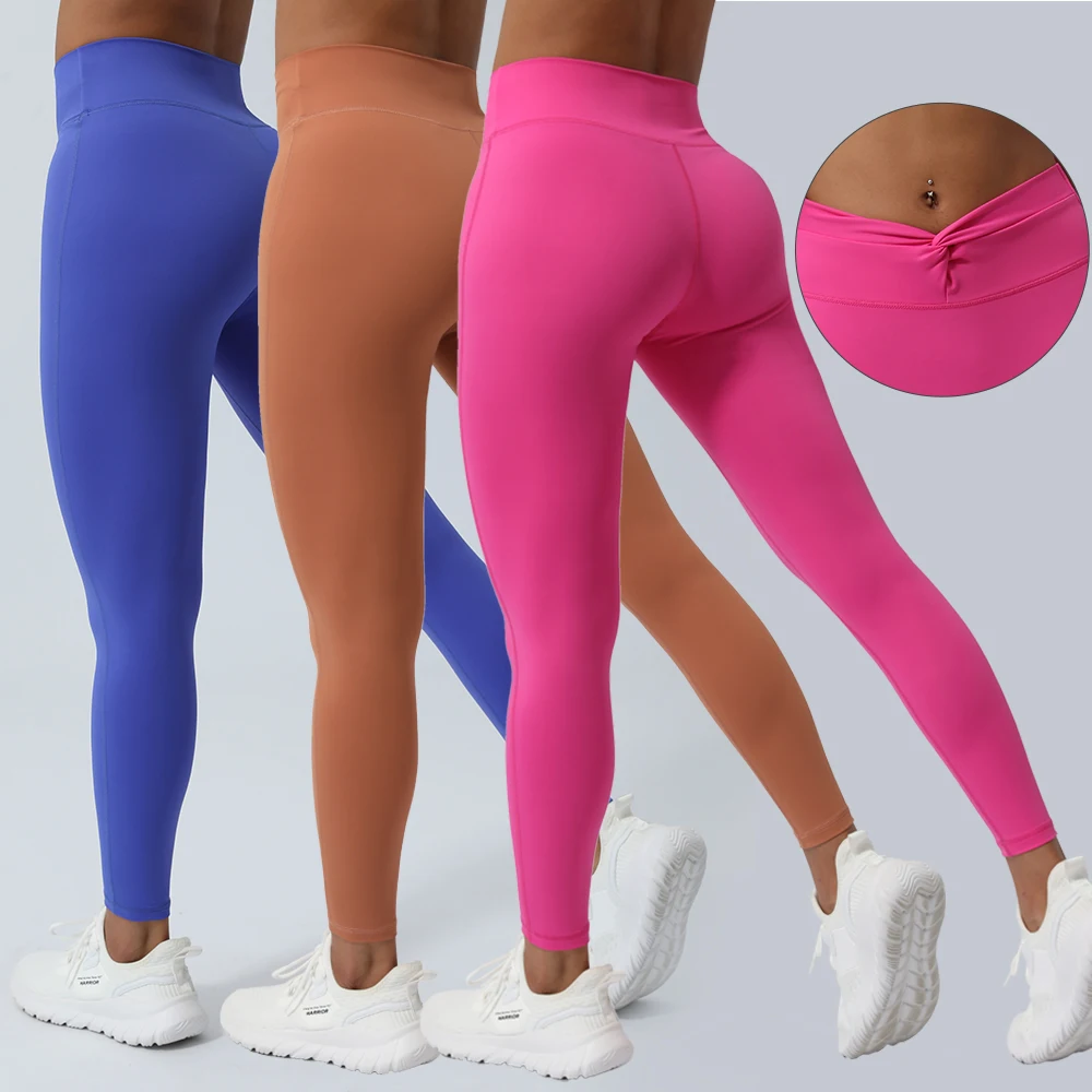 Women Fitness Leggings Kink Without Front Seam Sport Pants Lifting Buttocks Solid Color Running Workout