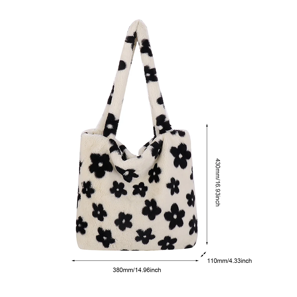 Features: 1. Soft and Fluffy Material: Crafted from ultra-soft and fluffy plush material, this black floral shoulder bag ensures a comfortable touch. Every detail of this bag has been meticulously checked, guaranteeing a high-quality product. 2. Ample Capacity: With dimensions of 430x380x110mm (16.93 X 14.96 X 4.33 inches) and a handle height of 32cm, this ladies’ autumn/winter flower tote handbag offers generous space to easily accommodate all your essentials. It has enough capacity to hold your phone, wallet, cosmetics, keys, lipstick, and more. 3. Versatile and Stylish Design: This women’s plush underarm bag exudes personality and can be effortlessly matched with various outfits. It can be used as a casual handbag or converted into a special shoulder bag, providing versatility for different occasions. 4. Gift Choice: Surprise your girlfriend, wife, or mother with this lightweight and comfortable fluffy shoulder bag. It makes a gift for any occasion, including Christmas, Valentine’s Day, birthdays, and anniversaries. 5. Dedicated Customer Service: We offer professional customer service both before and after purchase. If you encounter any quality issues with the satchel hobo bag, please don’t hesitate to reach out to us. Your satisfaction is our top priority. Specification: