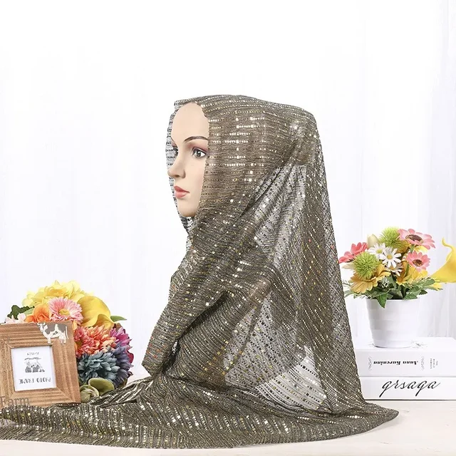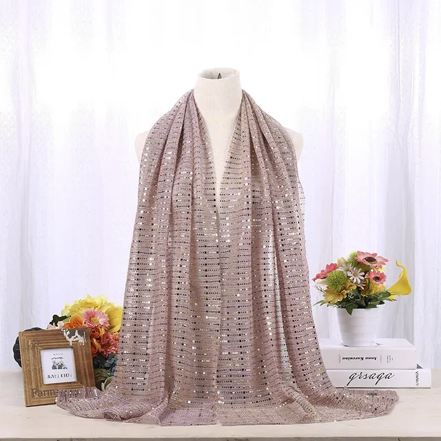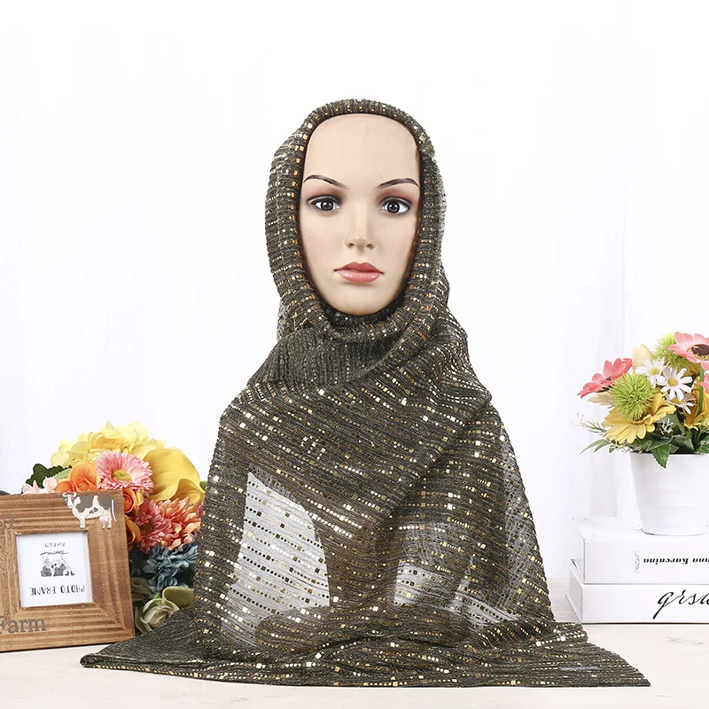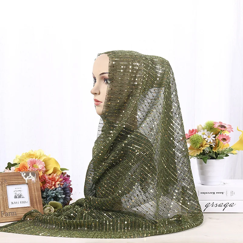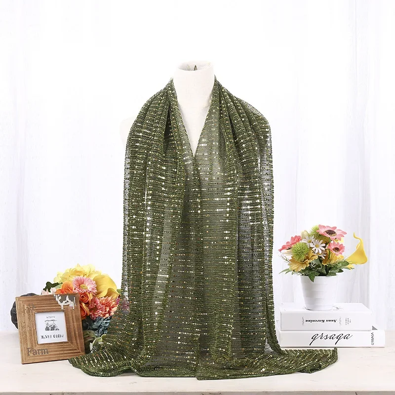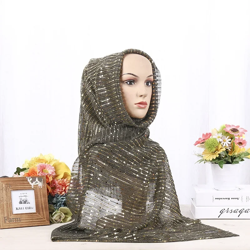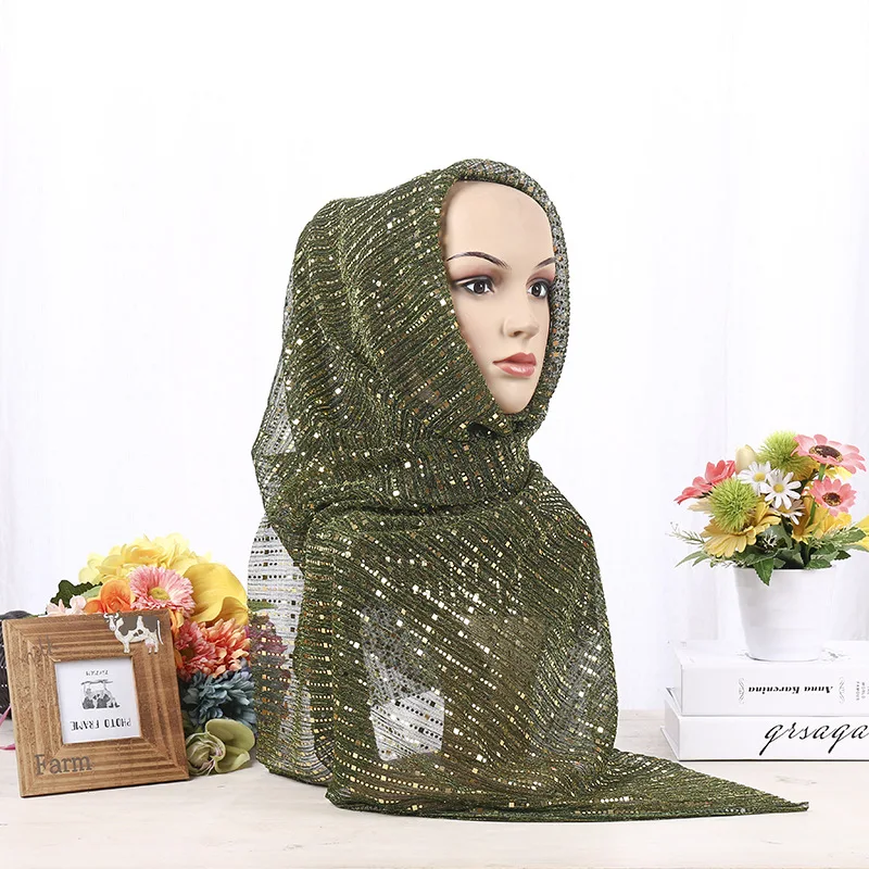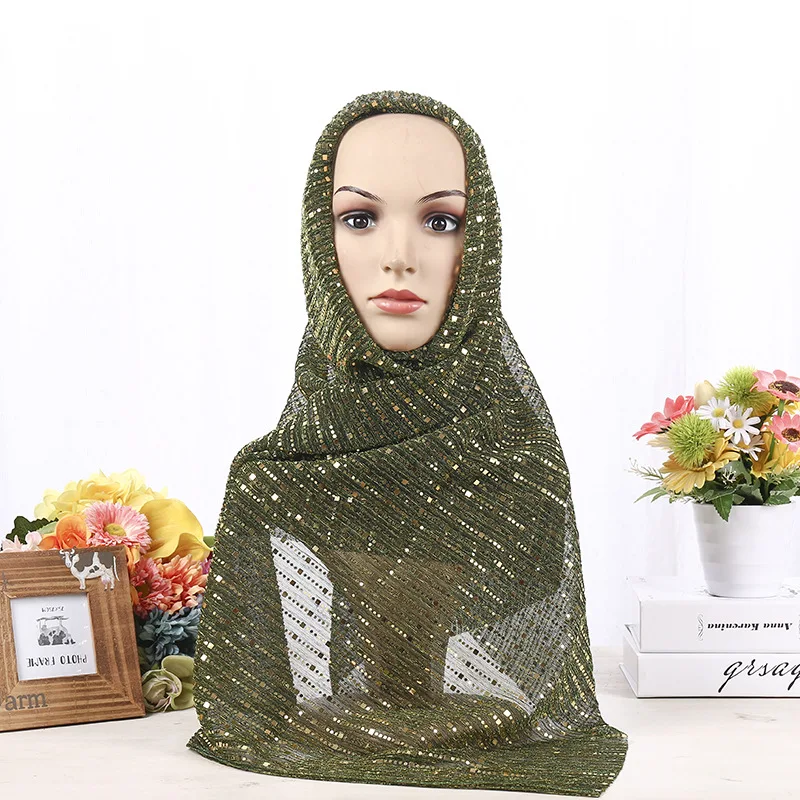Women Hijabs Islamic Ladies Sequins Chiffon Long Shawl Head Scarf Female Full Cover Wrap Hijab Plain Muslim Fashion Headscarf