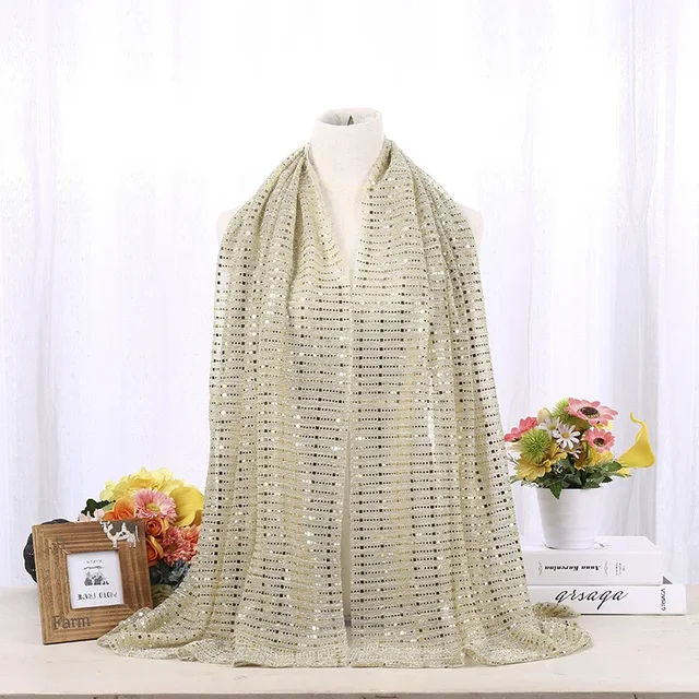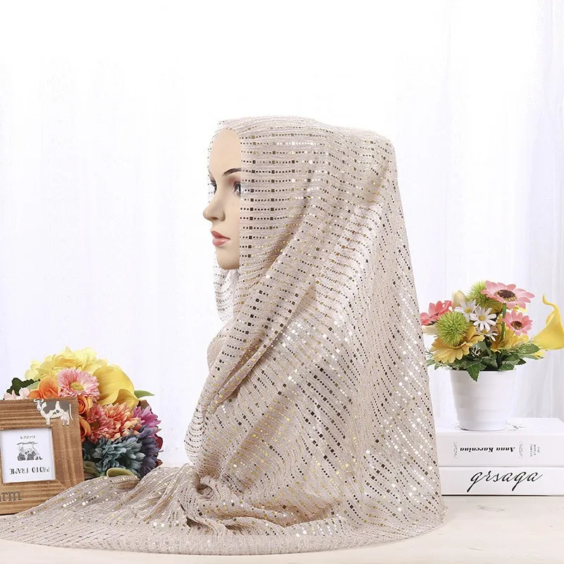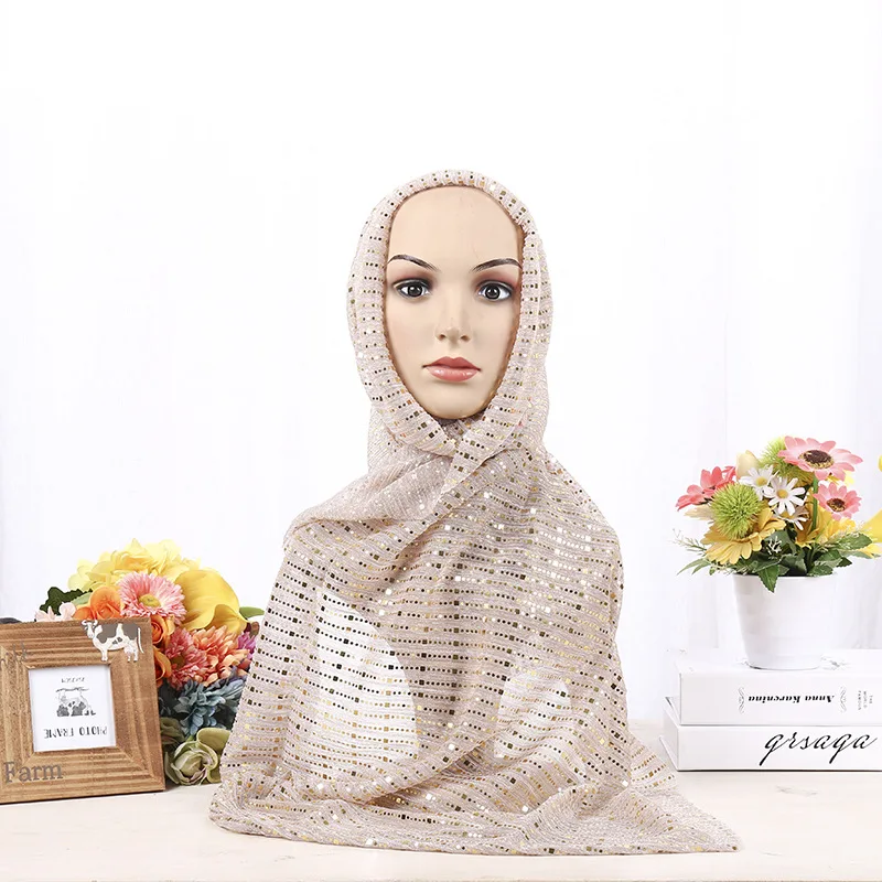 Women Hijabs Islamic Ladies Sequins Chiffon Long Shawl Head Scarf Female Full Cover Wrap Hijab Plain