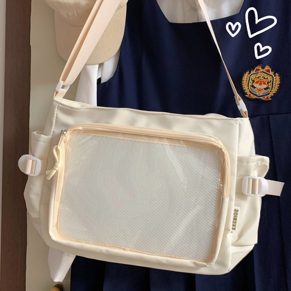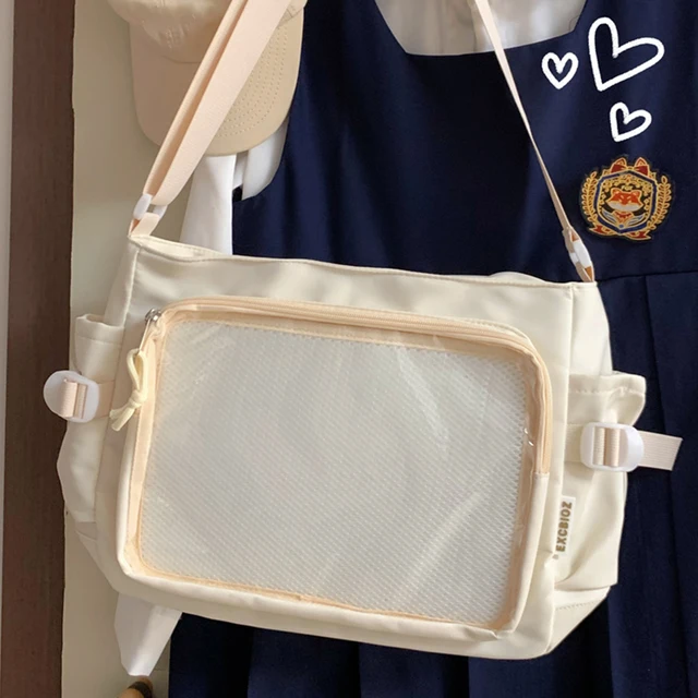 Women Ita Bag Japanese Style Shoulder Purse with Clear Window Cartoon Book Bag Multi-pockets Adjustable