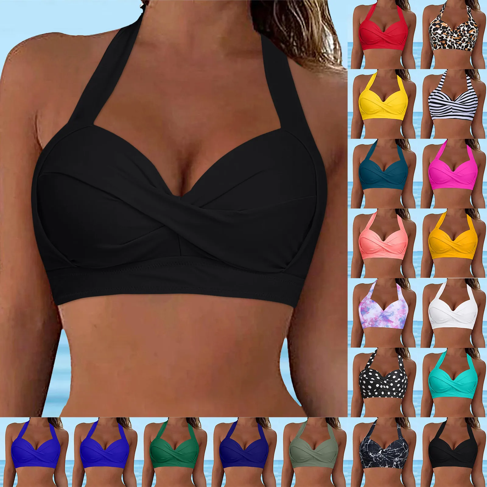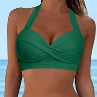 Women Lace Up Swimwear Tops Underwire Full Coverage Bikini Top Push Up Swim Crop Top Tie Back Bathing Suit Tops