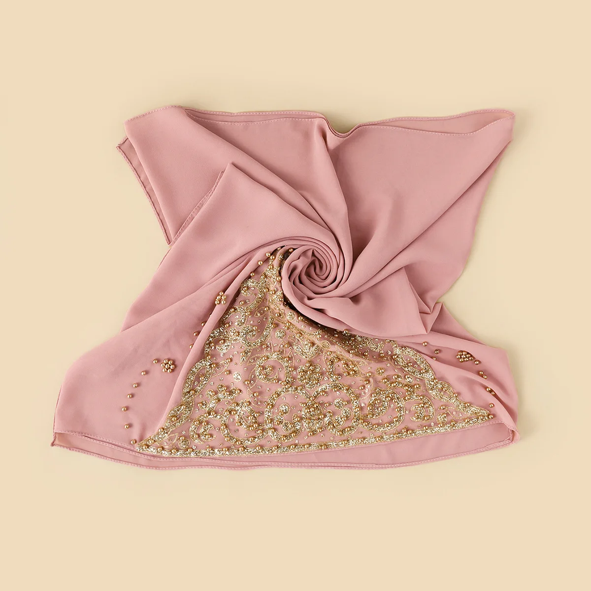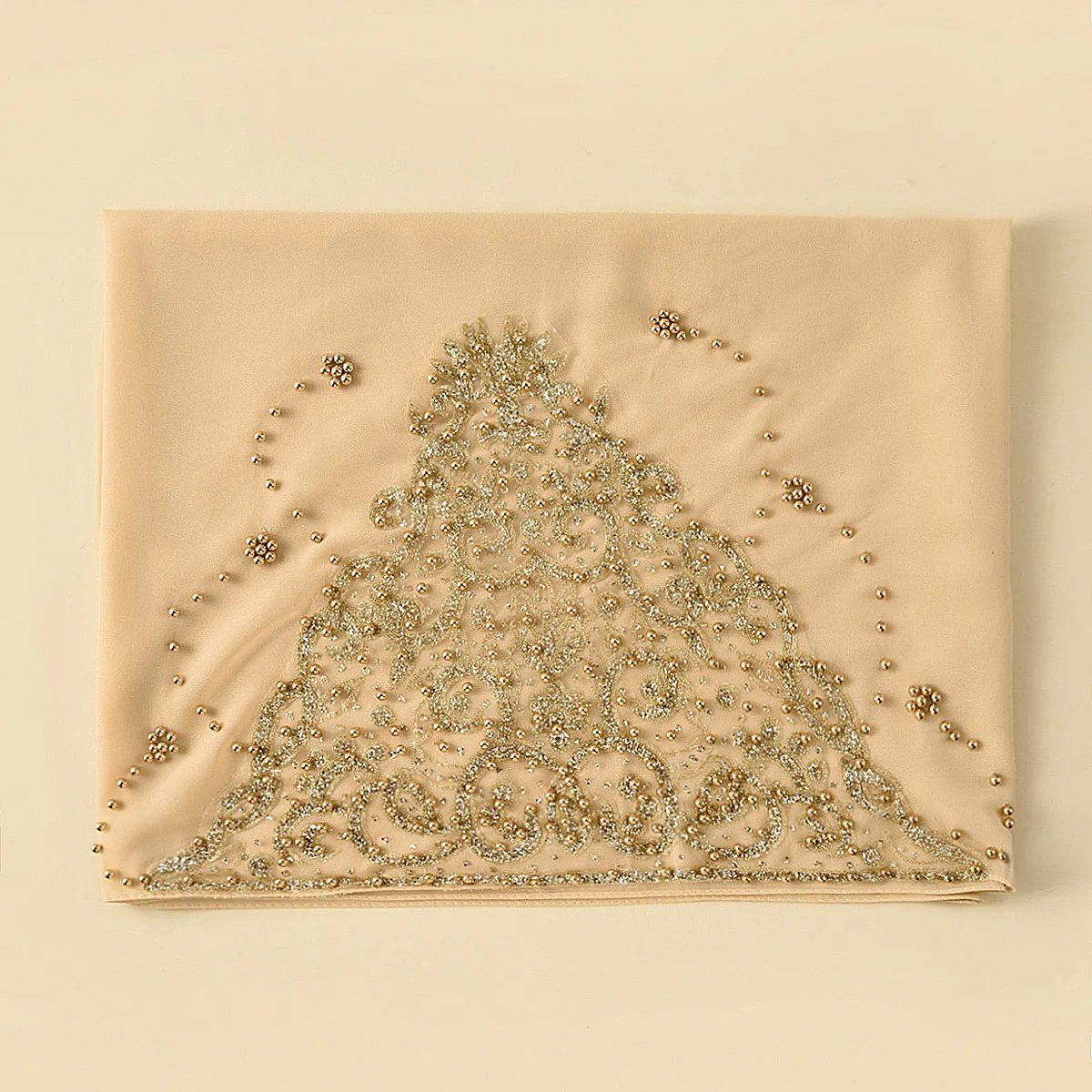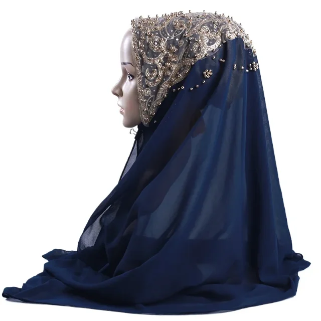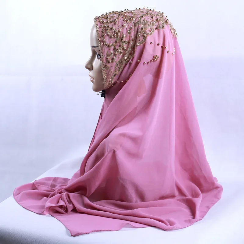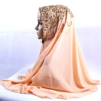 Women Long Tops for Muslim Fashion Headscarf  Pearl Chiffon Turban Scarf Hijab