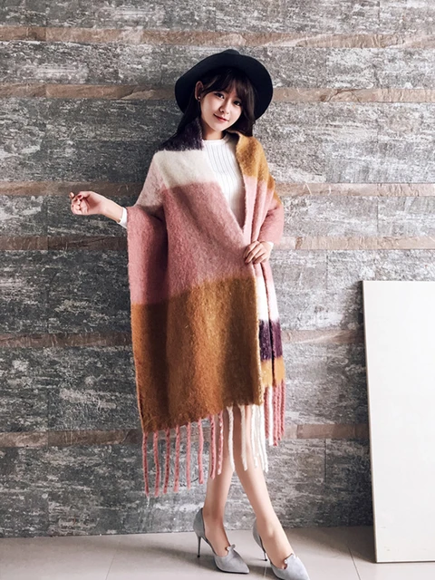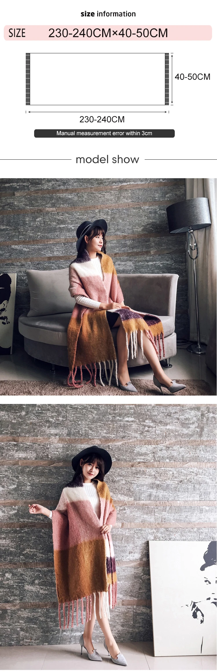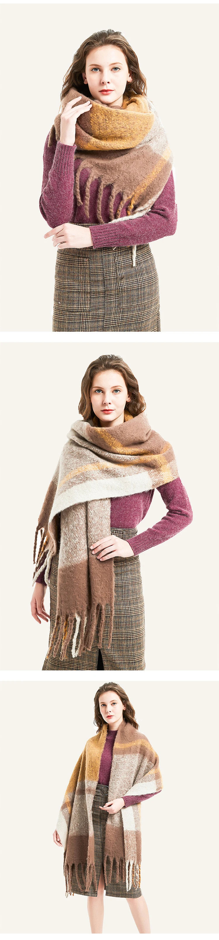 Women Men Knitted Winter Retro Plaid Scarf Imitation Cashmere Pashmina Warm Scarve Pareo Foulard Male