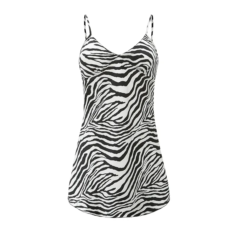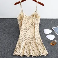 Women Nightgowns Padded Bra Faux Silk Satin Nightdress Female Leopard SleepDress Sleepwear Sleeveless Nightwear Homewear Pajama