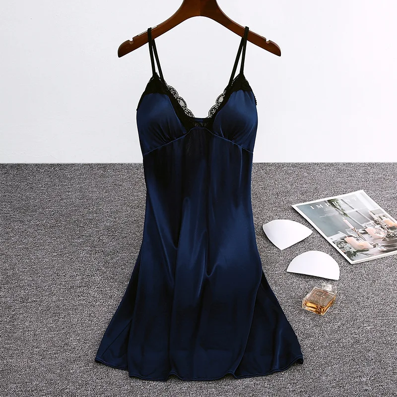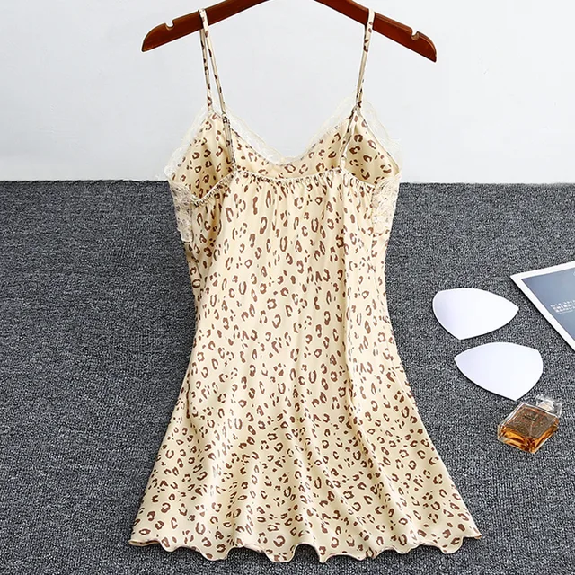 Women Nightgowns Padded Bra Faux Silk Satin Nightdress Female Leopard SleepDress Sleepwear Sleeveless