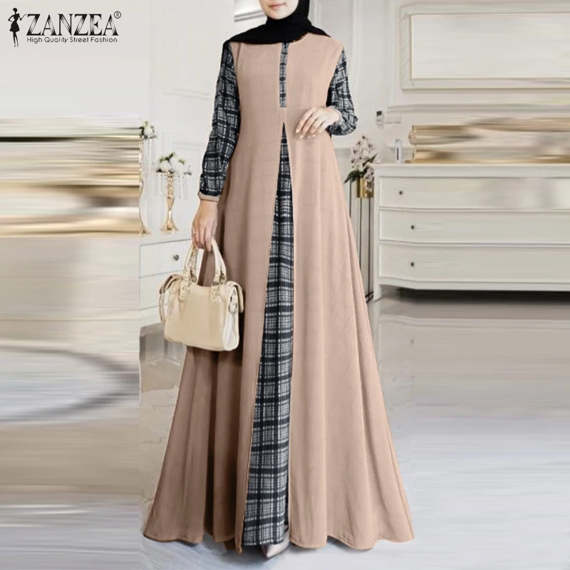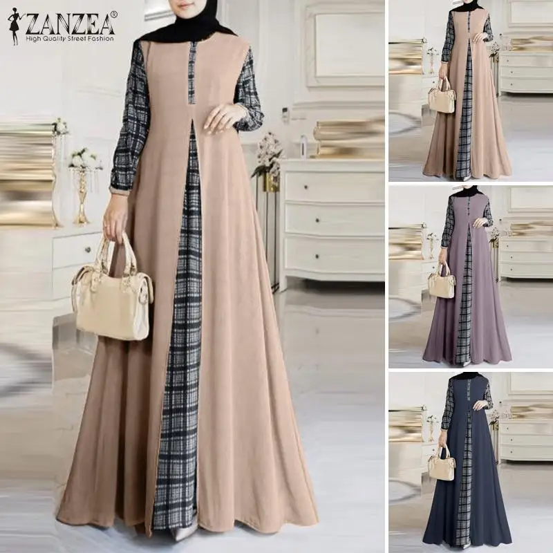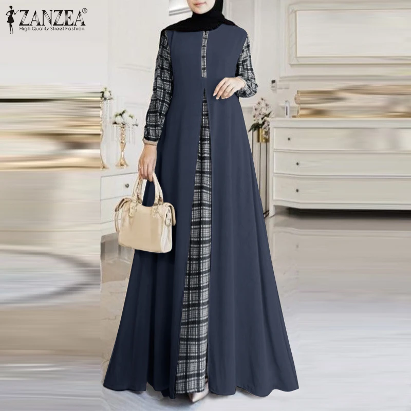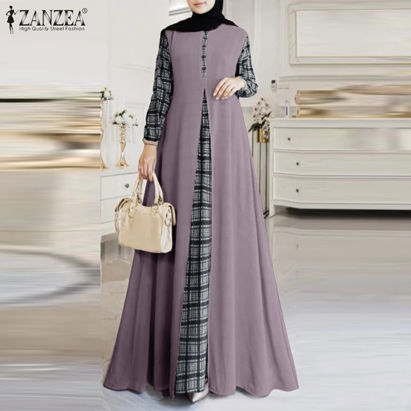 | Package included:1 Dress Material:100% Polyester Colors:Purple,Dark Blue,Khaki Sleeve Length:Full Sleeve Neckline:O-Neck Pattern:Grid Patchwork Length:Ankle Length Buckle chain:Buttons on the back Thickness:Thin Style:Leisure,Bohemian,Retro,Europe,Muslim Dress Abaya Kaftan Season:Spring,Summer,Autumn,Winter Occasion:Family,Party,Beach,Wedding,Holiday,Employment Label: Yes Attentions: 1.The Real Object May Exist Slightly Colors Differences Compared To Images As Different Computers Display.Caution If Minding,Thanks. 2.There Might Be A Manual Measuring 1-3 cm Error.Sorry For Any Inconvenience. 3.Please Prevail On Real Item, Model Images For Reference Only. 4.Attention!!!Please check the size chart carefully before placing the order.