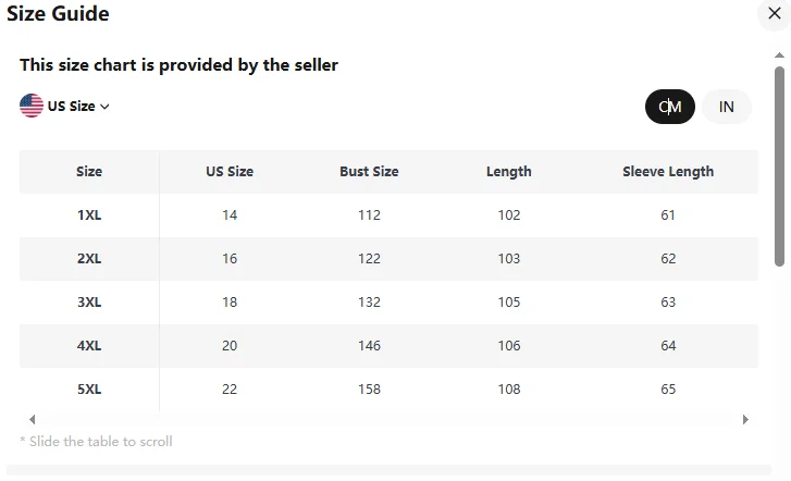 | size_info | {"sizeInfoList":[{"length":{"cm":"112","inch":"44.09"},"size":"1XL","vid":12668979},{"length":{"cm":"122","inch":"48.03"},"size":"2XL","vid":200000322},{"length":{"cm":"132","inch":"51.97"},"size":"3XL","vid":115781},{"length":{"cm":"146","inch":"57.48"},"size":"4XL","vid":200000990},{"length":{"cm":"158","inch":"62.20"},"size":"5XL","vid":200000991}]} |