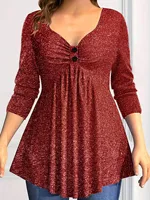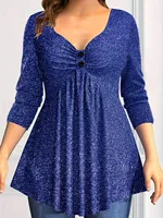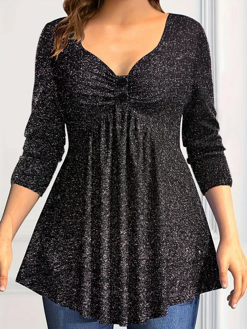 -53%Women Plus Size Long Sleeve T shirt Casual Black Lace-Up Lace Patchwork V-Neck Autumn Spring Basic Soft Pullovers Tee Top