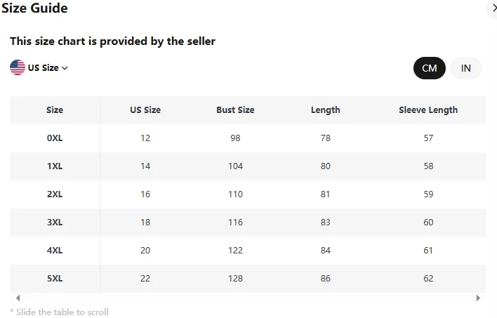 | size_info | {"sizeInfoList":[{"length":{"cm":"98","inch":"38.58"},"size":"0XL","vid":23800842157},{"length":{"cm":"104","inch":"40.94"},"size":"1XL","vid":12668979},{"length":{"cm":"110","inch":"43.31"},"size":"2XL","vid":200000322},{"length":{"cm":"116","inch":"45.67"},"size":"3XL","vid":115781},{"length":{"cm":"122","inch":"48.03"},"size":"4XL","vid":200000990},{"length":{"cm":"128","inch":"50.39"},"size":"5XL","vid":200000991}]} |