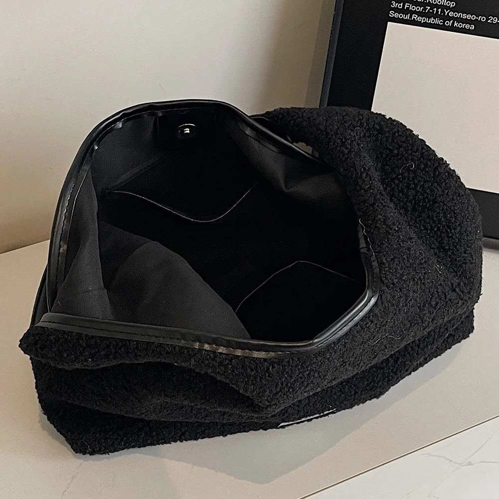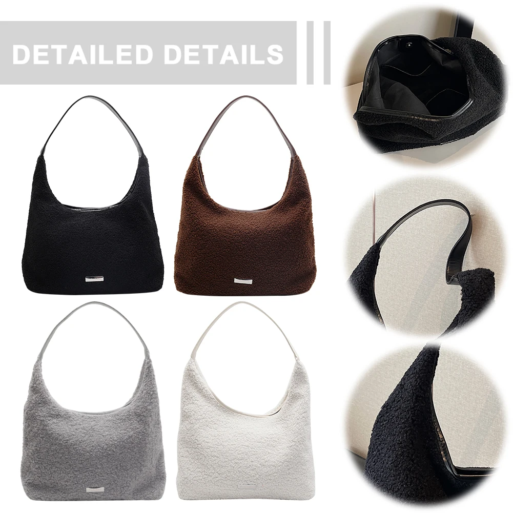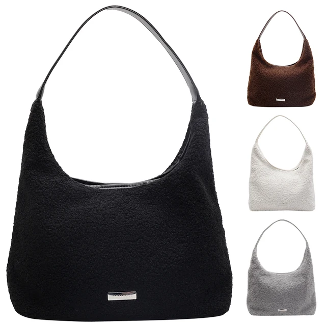 Furry Tote Bag Small Ruched Hand Purse Soft Lambswool Cute Mini Faux Fur Bag Winter Fuzzy Pursess and Handbag for Women Lady