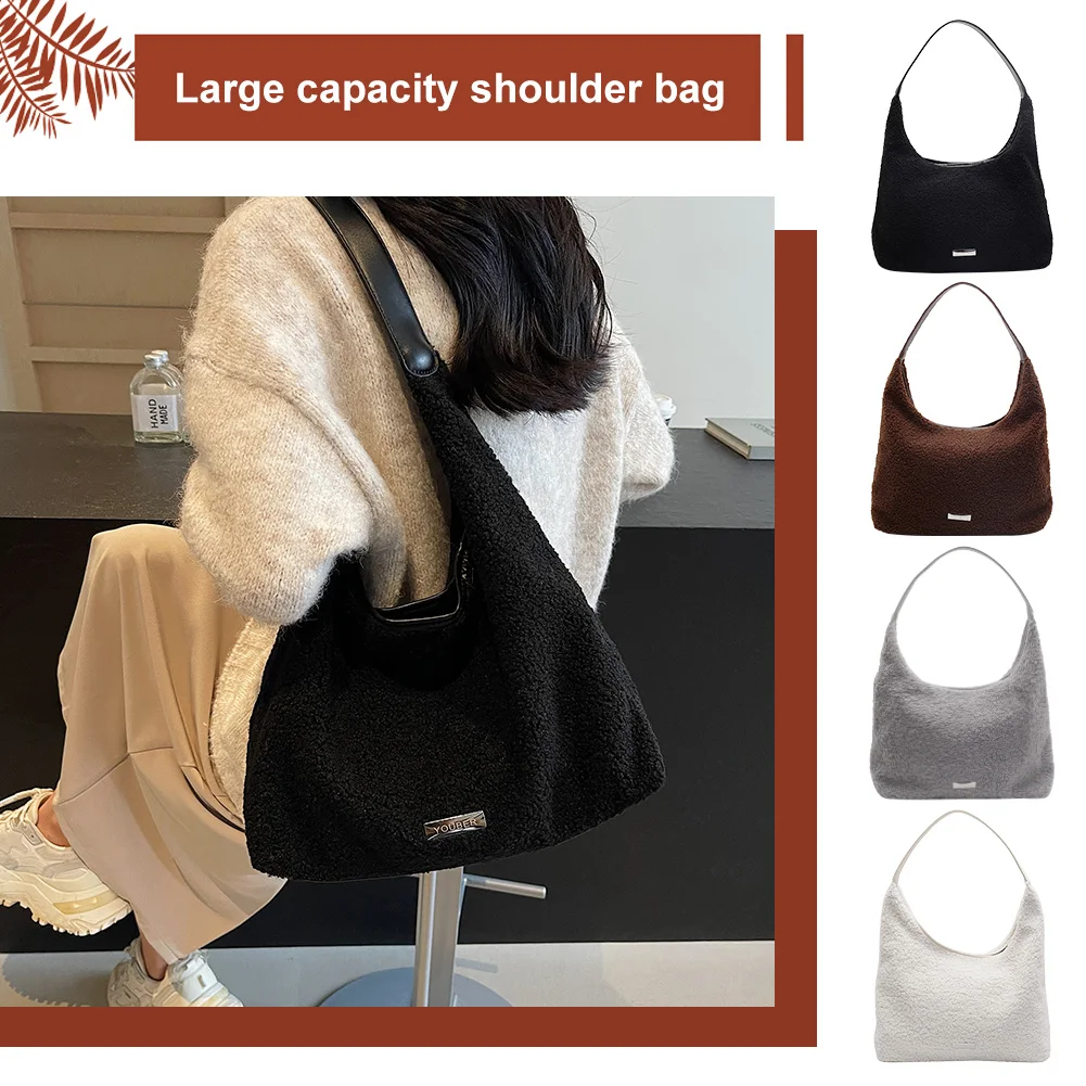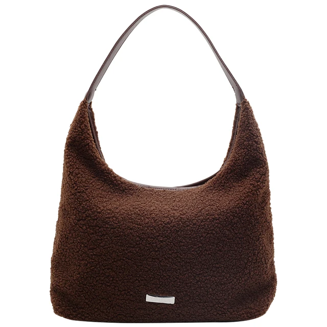 Women Faux Fur Crossbody Bag Adjustable Strap Handbag Solid Color Clutch Purse Satchel Purse for Travel Party