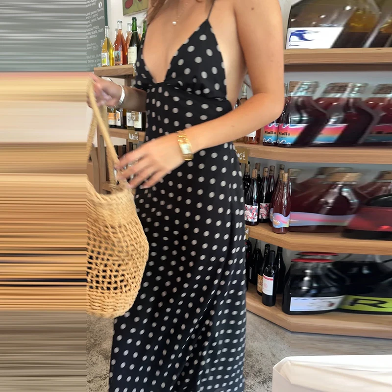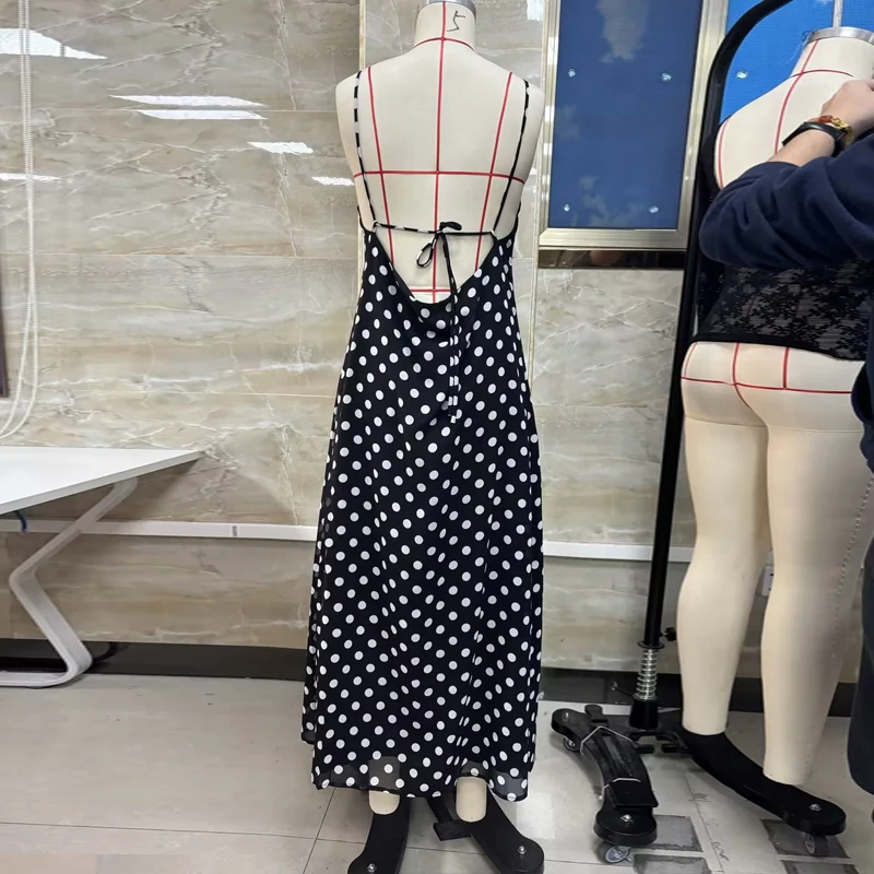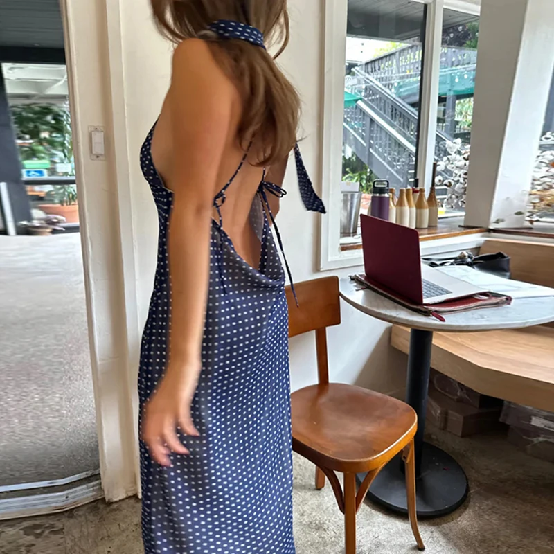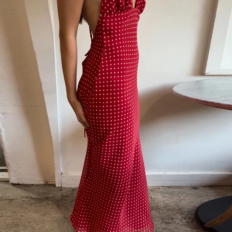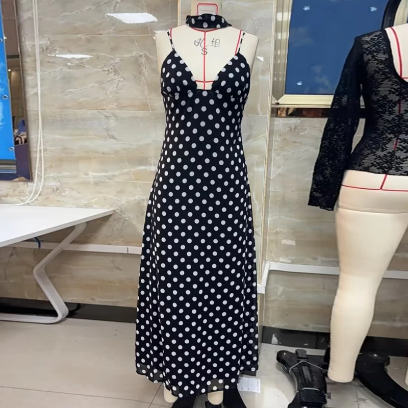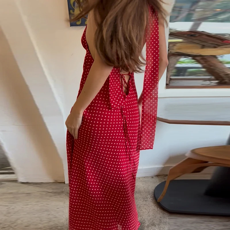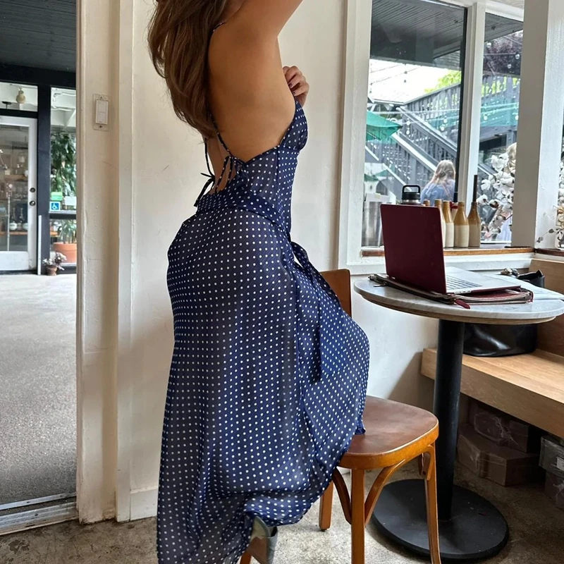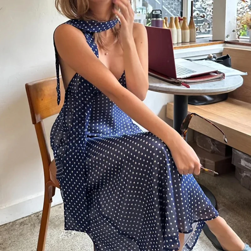 Women Polka Dot Summer Dress with Scarf Coquette Y2k V Neck Tie Back Spaghetti Strap Maxi Dresses 2025