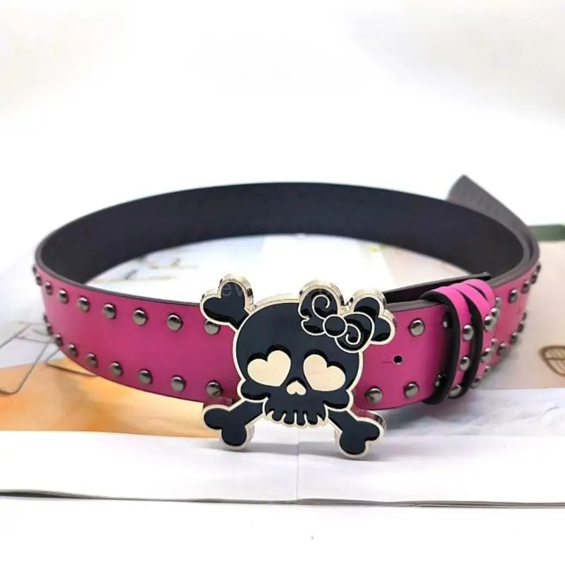 This belt with skull studded decors is a fashion statement! Use pu leather material for longlasting use.
