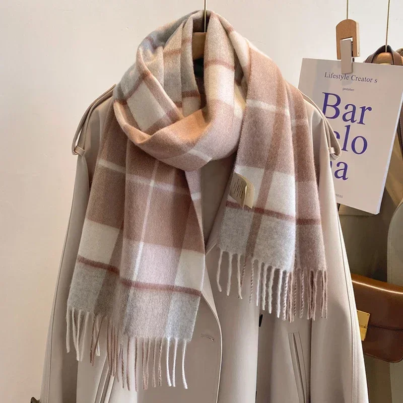 Women Scarf Autumn Winter Vintage Preppy Style Plaid Wrap Scarf Pashmina Mujer Female Foulard Shawl Wrap Apparel Accessories