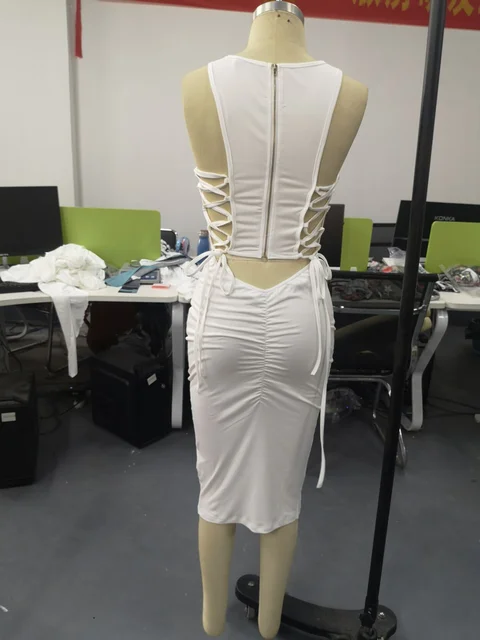 Women Sexy Cut Out Lace-Up Dress 2023 Summer Ladies Fashion Women's Zipper Design Sleeveless Midi Bodycon Lace-Up Dresses
