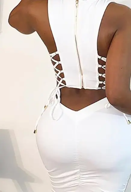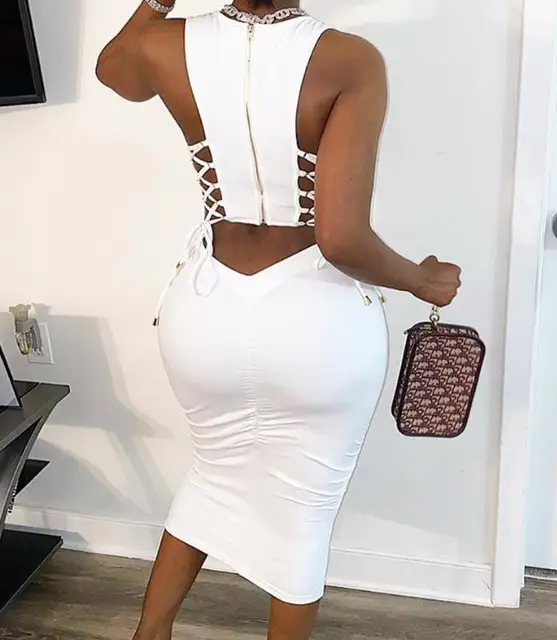 Women Sexy Cut Out Lace-Up Dress 2023 Summer Ladies Fashion Women’s Zipper Design Sleeveless Midi Bodycon Lace-Up Dresses