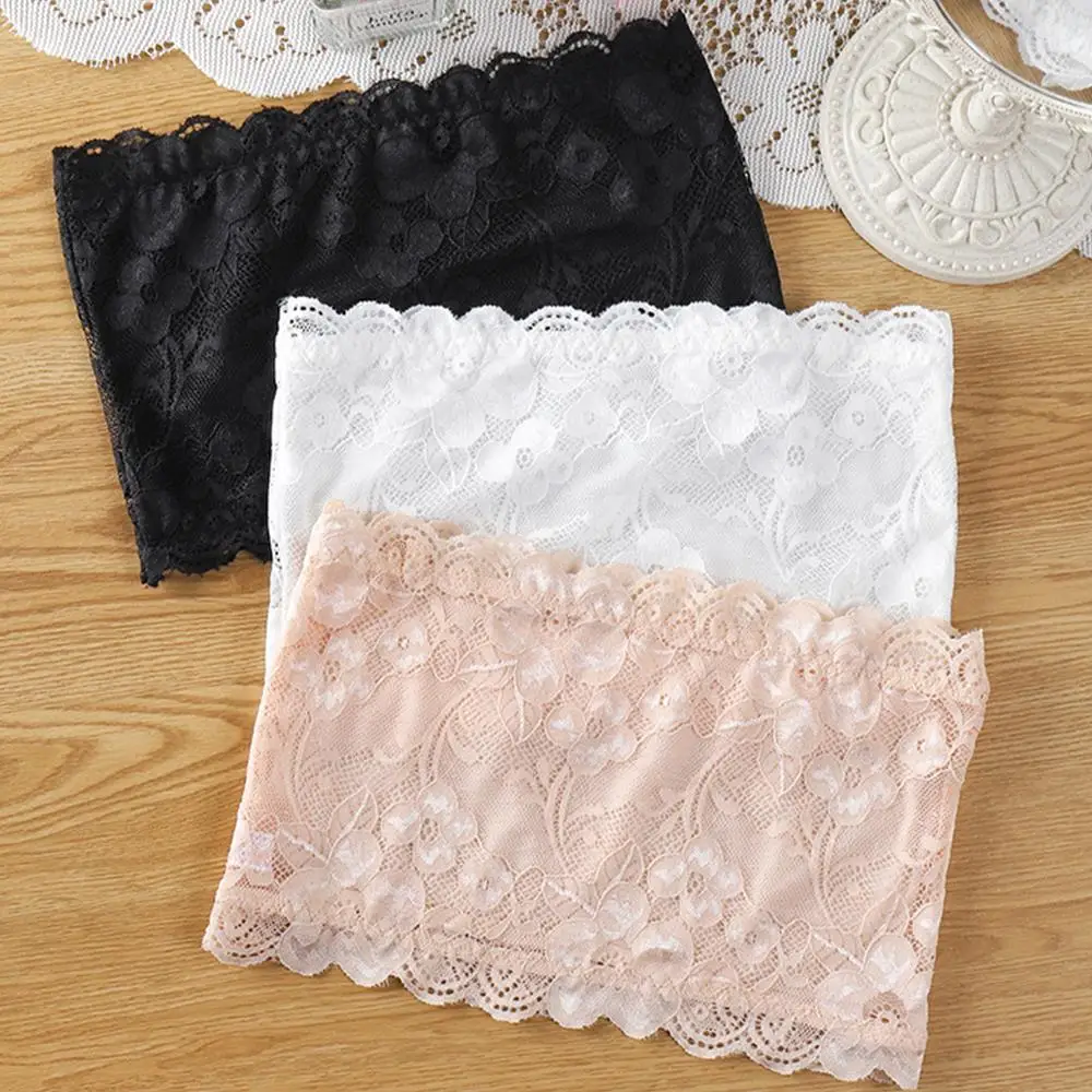 Women Sexy Lingerie Black/White/Skin Lace Tube Tops Comfortable Underwear Invisible Strapless Chest All-match Thin Undershirts