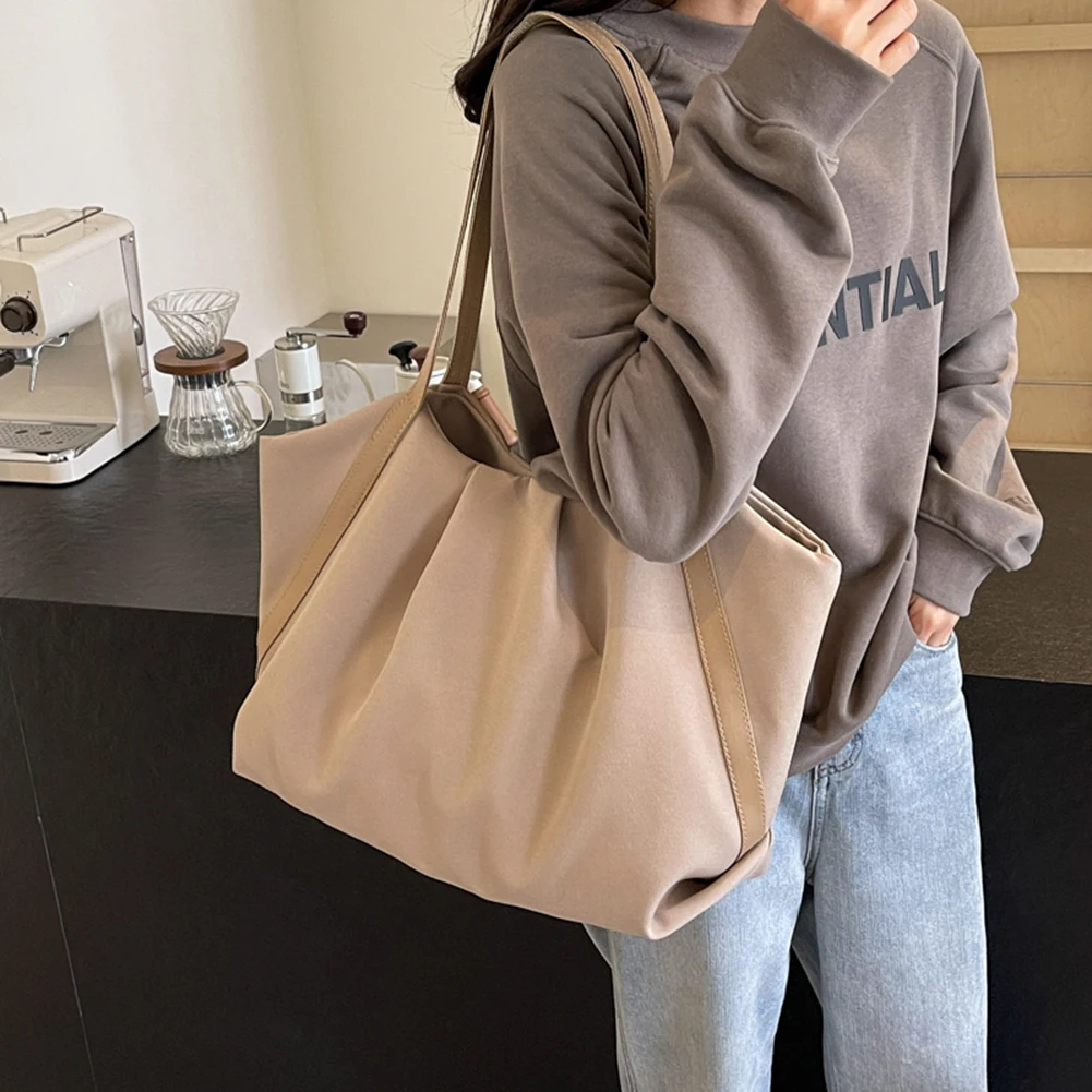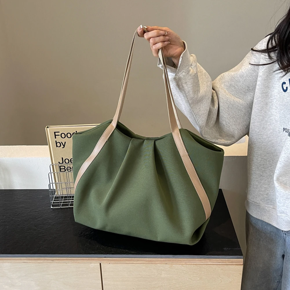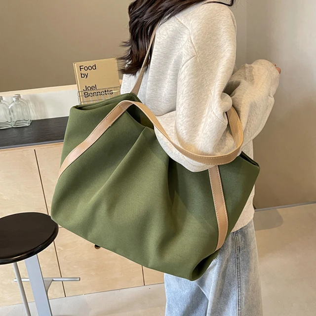 Women Shopping Handheld Bag Large Capacity Canvas Simple Shoulder Bag Contrast Color Casual Tote Handbag Daily Bag for Female Specification: