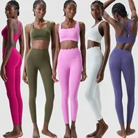 Seamless Yoga Set Women 2 Pcs Scrunch Gym Leggings Rouched Halter Sports Bra Workout Clothes Woman Gym Suit