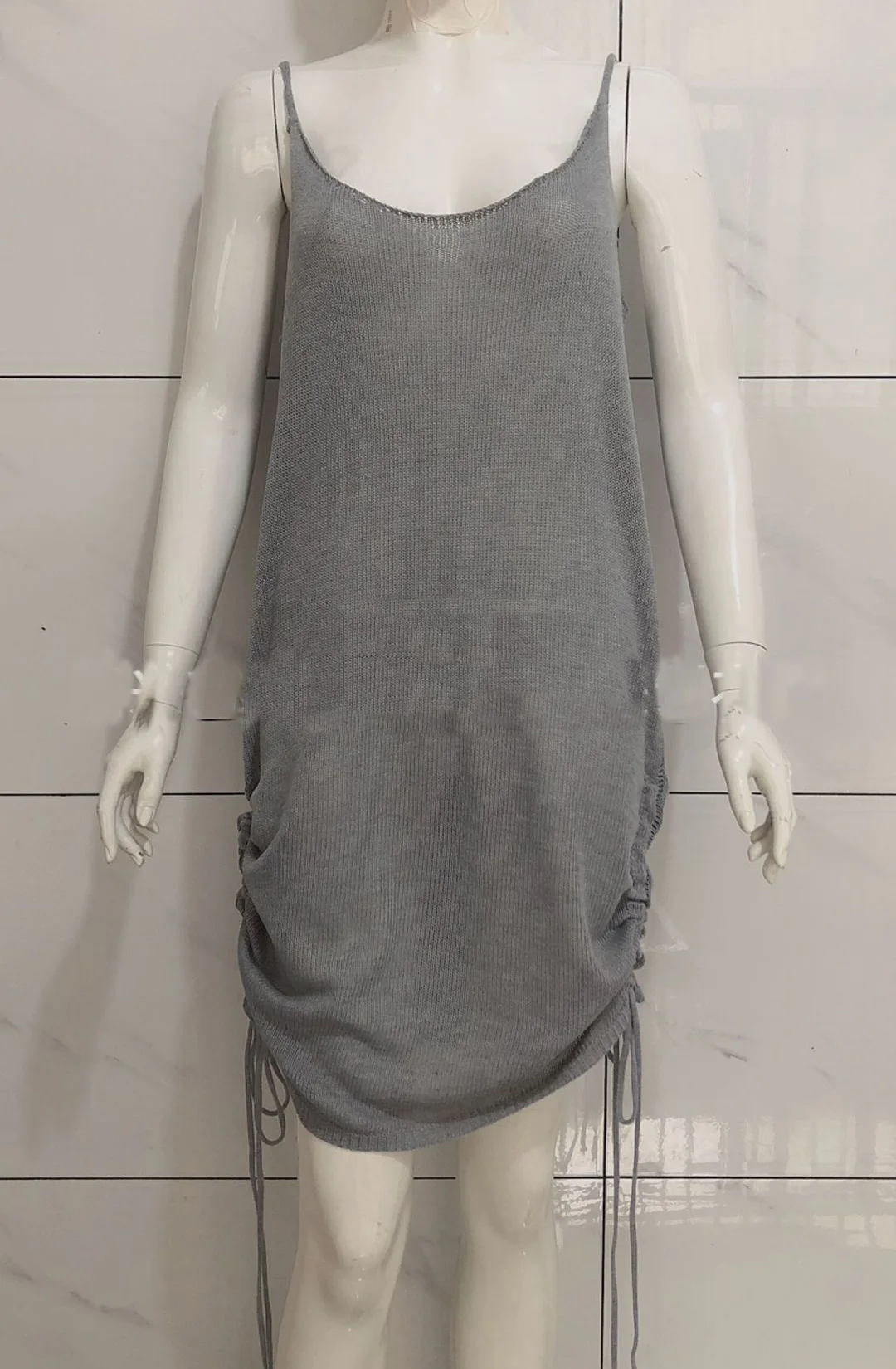 Slimming Knitted Dress V-Neck Long Sleeve A- Line Mini Dress Pure Desire Fashionable Base Layer Sexy Polyester Fabric Short Skir