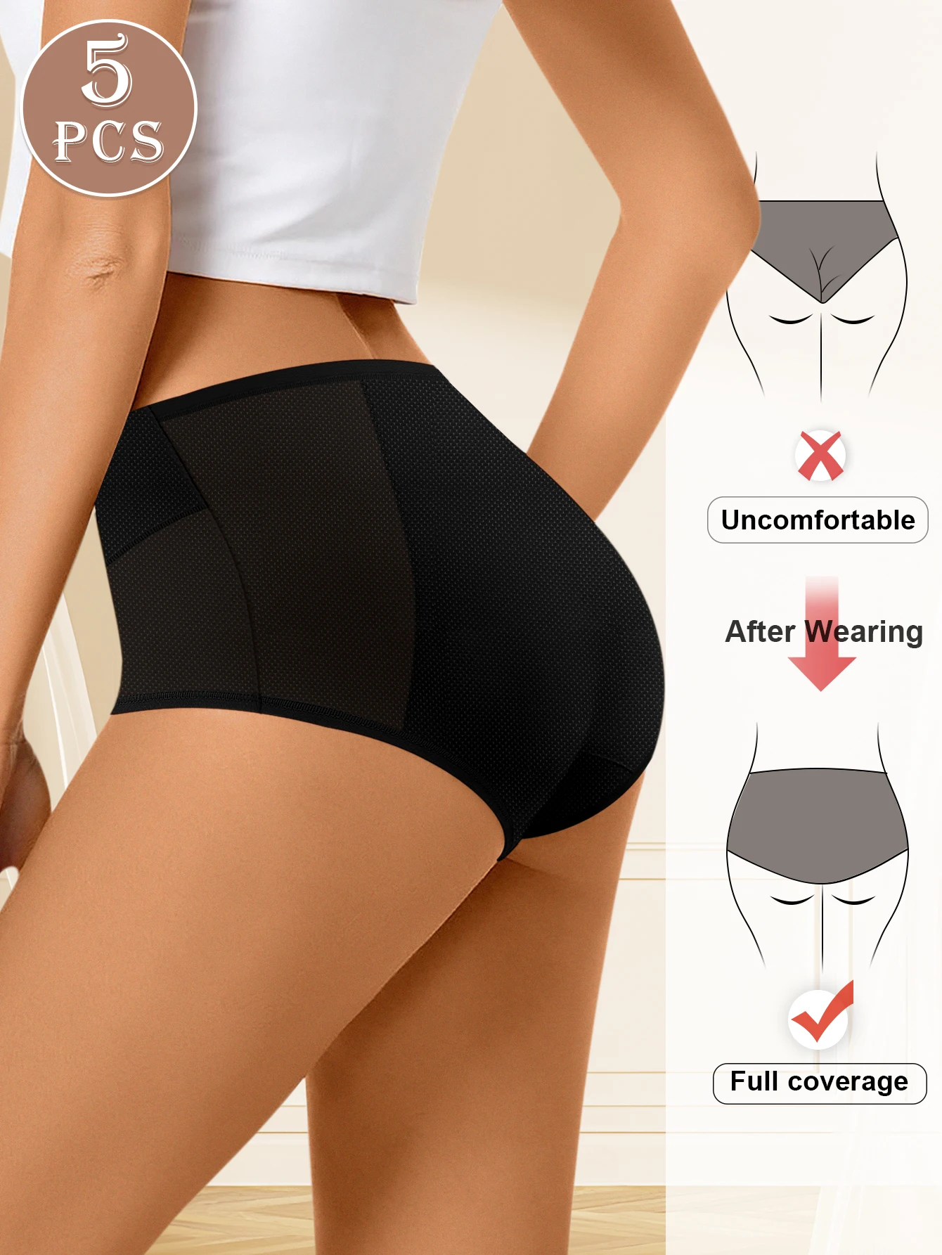 Perfect Mid-Rise Fit: Sitting gracefully at the natural waistline, these briefs offer just the right amount of coverage and support. The design ensures a comfortable, non-slip fit throughout the day, perfect for active lifestyles or relaxed moments alike.