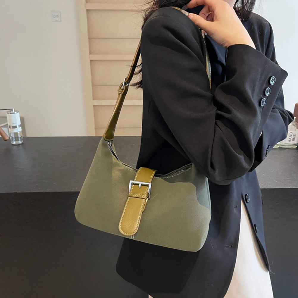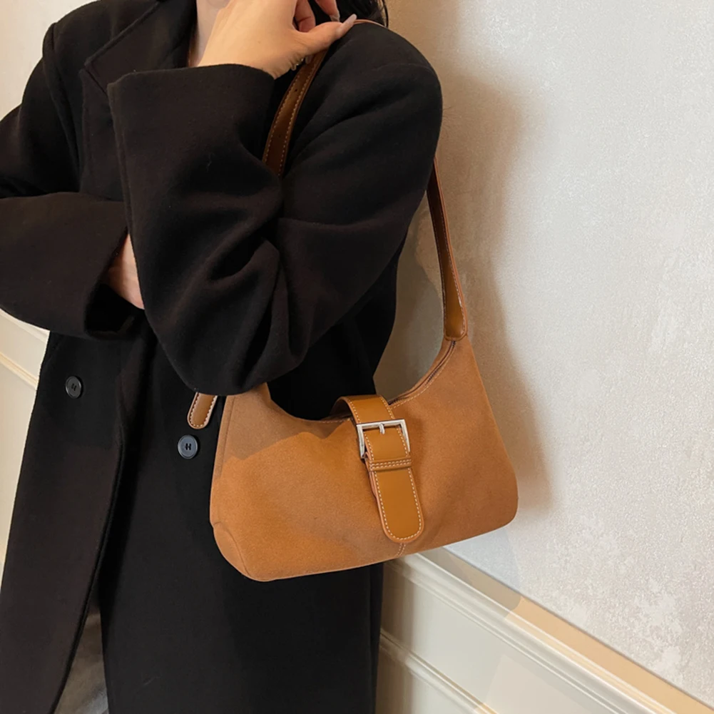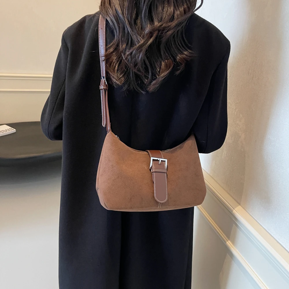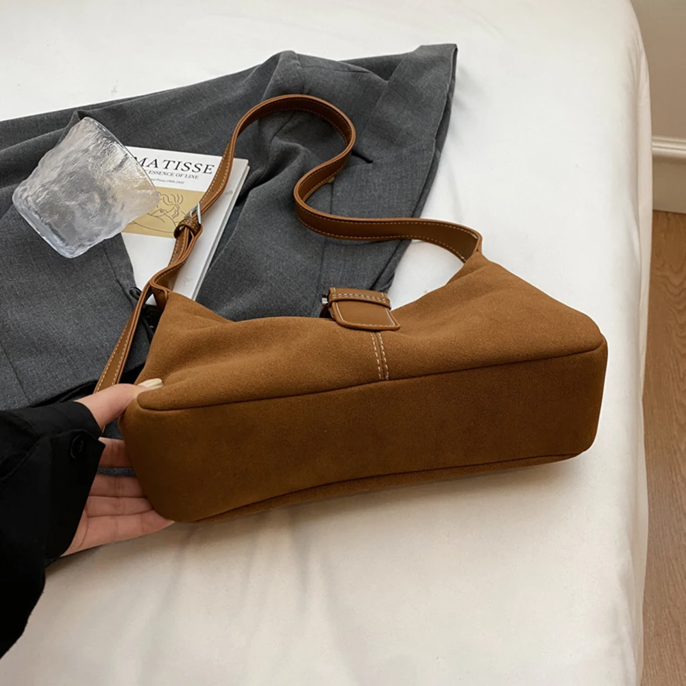 Large Capaci Suede oulder Bag for Women 2025 New Autumn Winter Frosted Retro Underarm Commuter Pillow Bag Casual Simple S...