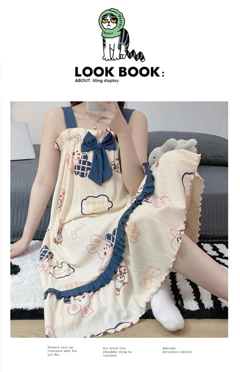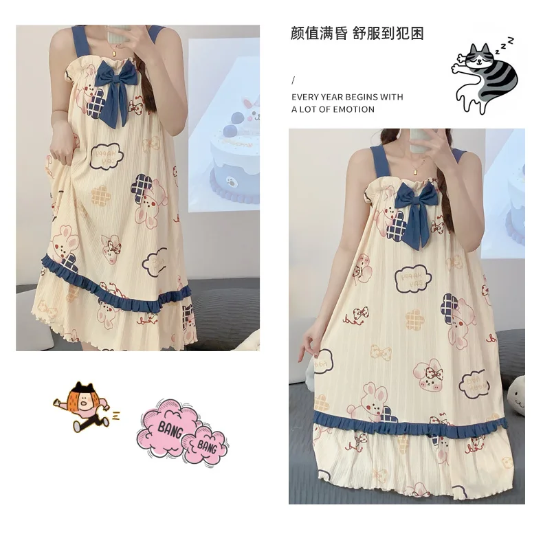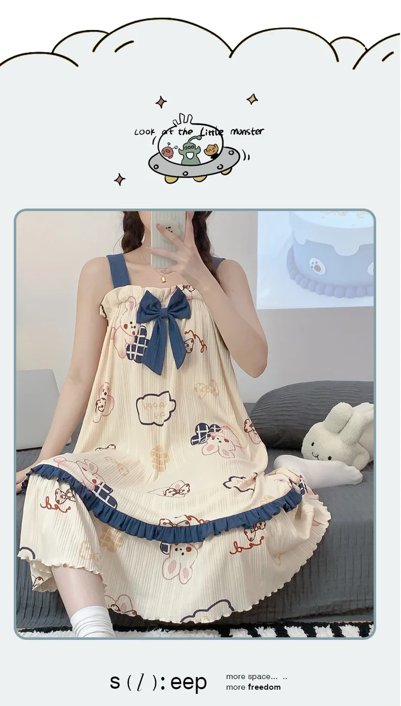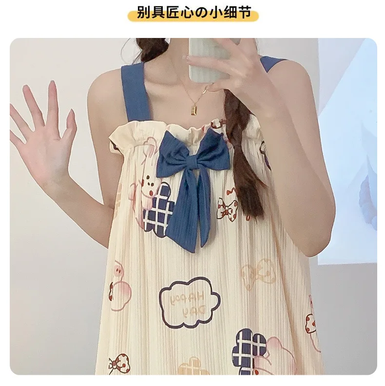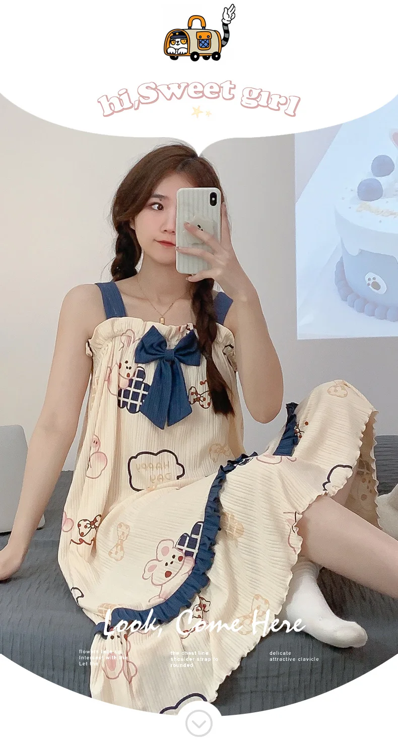 Women Summer Korean Cotton Nightgown Pink Cute Nightgowns Kawaii Princess Style Sleeveless Women’s Nightdress Lingerie Sleepwear