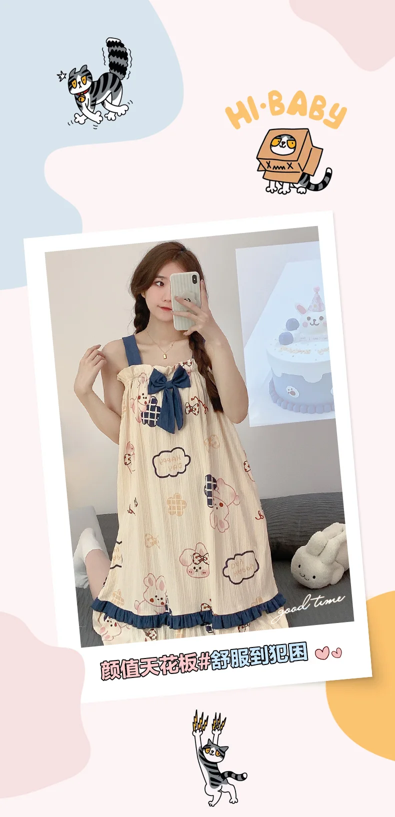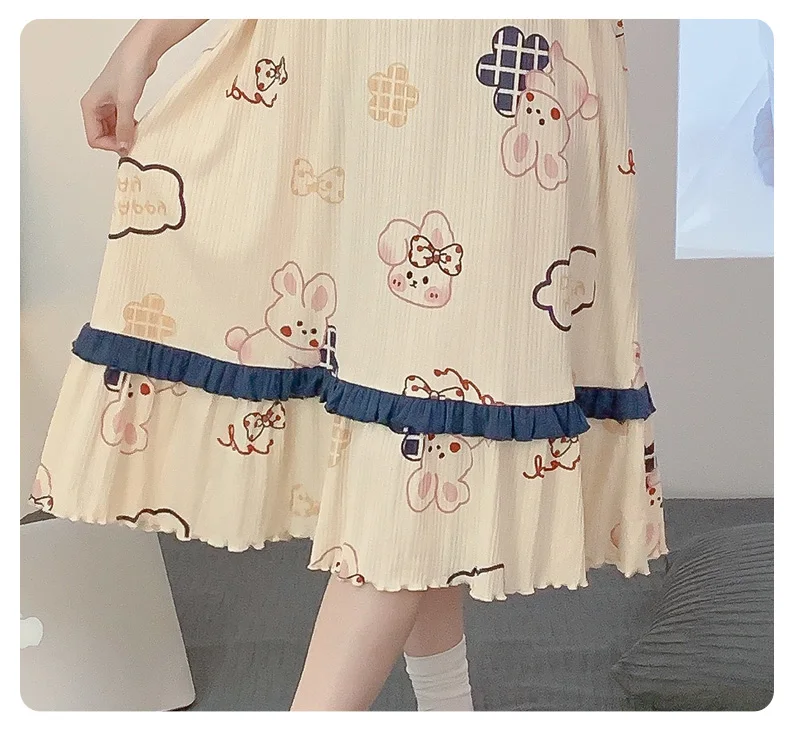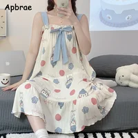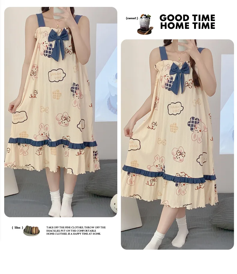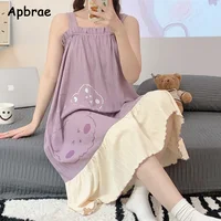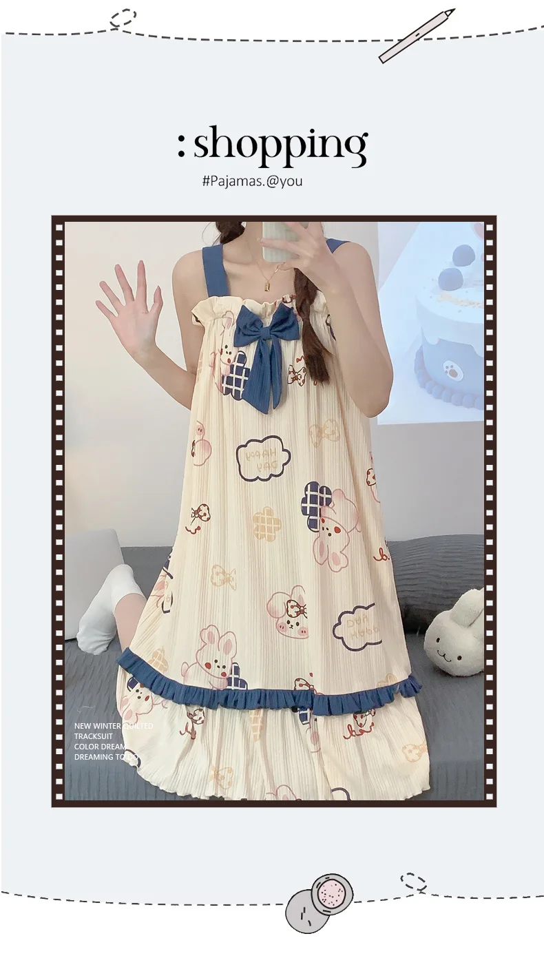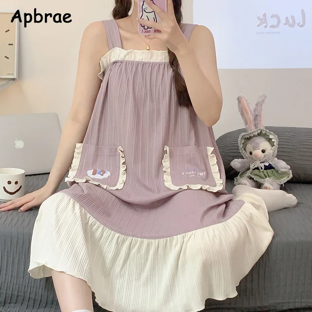 Women Summer Korean Cotton Nightgown Pink Cute Nightgowns Kawaii Princess Style Sleeveless Women’s Nightdress Lingerie Sleepwear