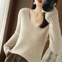 Women Sweater 2025 Autumn Winter Warm Basic Tops Casual V--neck Spring Bottoming Shirts Long Sleeve Fashion Korean Knit Pullover