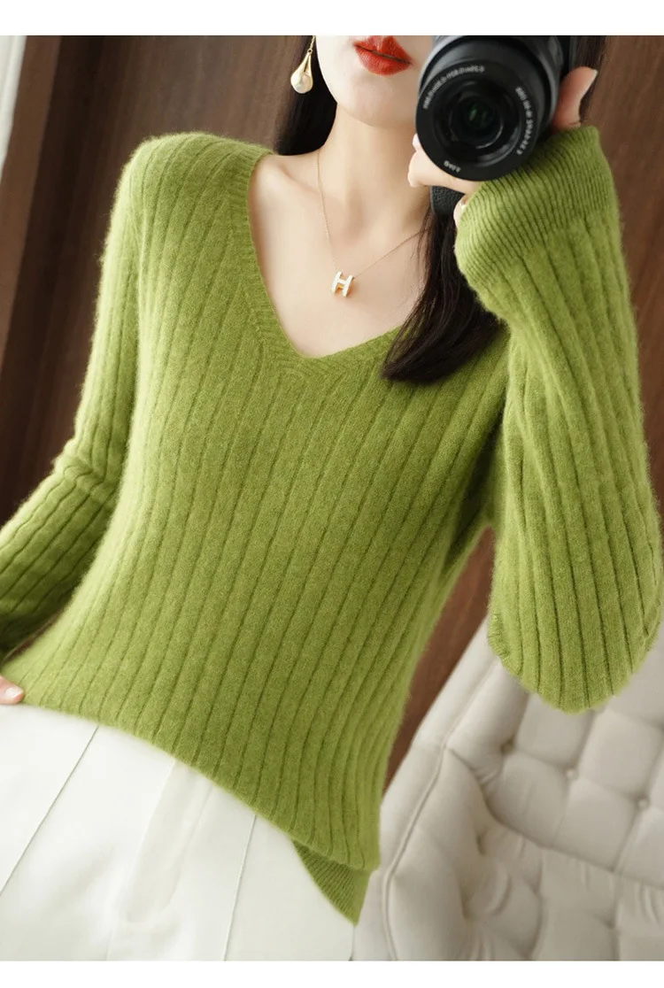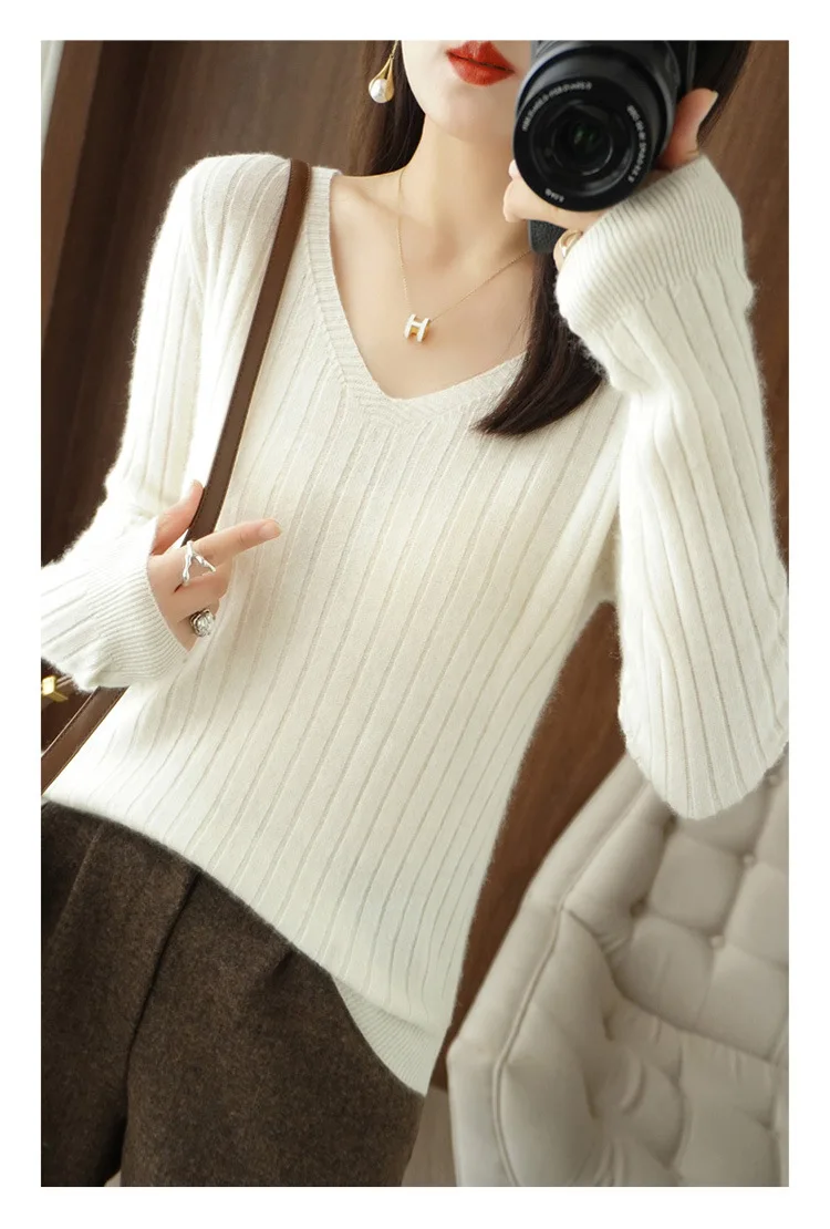 Women Sweater 2025 Autumn Winter Warm Basic Tops Casual V–neck Spring Bottoming Shirts Long Sleeve